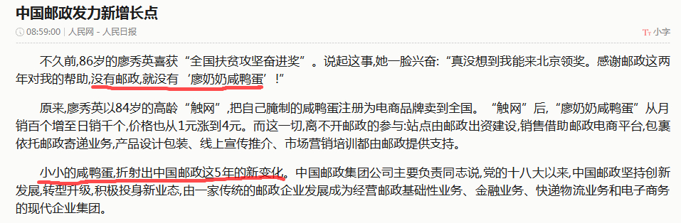 中国邮政发力新增长点(摘转自10.14人民日报)