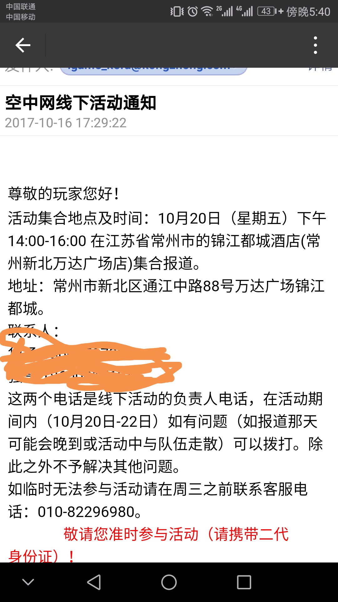 大佬们,你们有收到空中网的线下活动邀请吗?我今天下午收到空中网的电话,说周五下午14.00到16.00在常州举行线下活动,有大佬收到同样的消息吗?