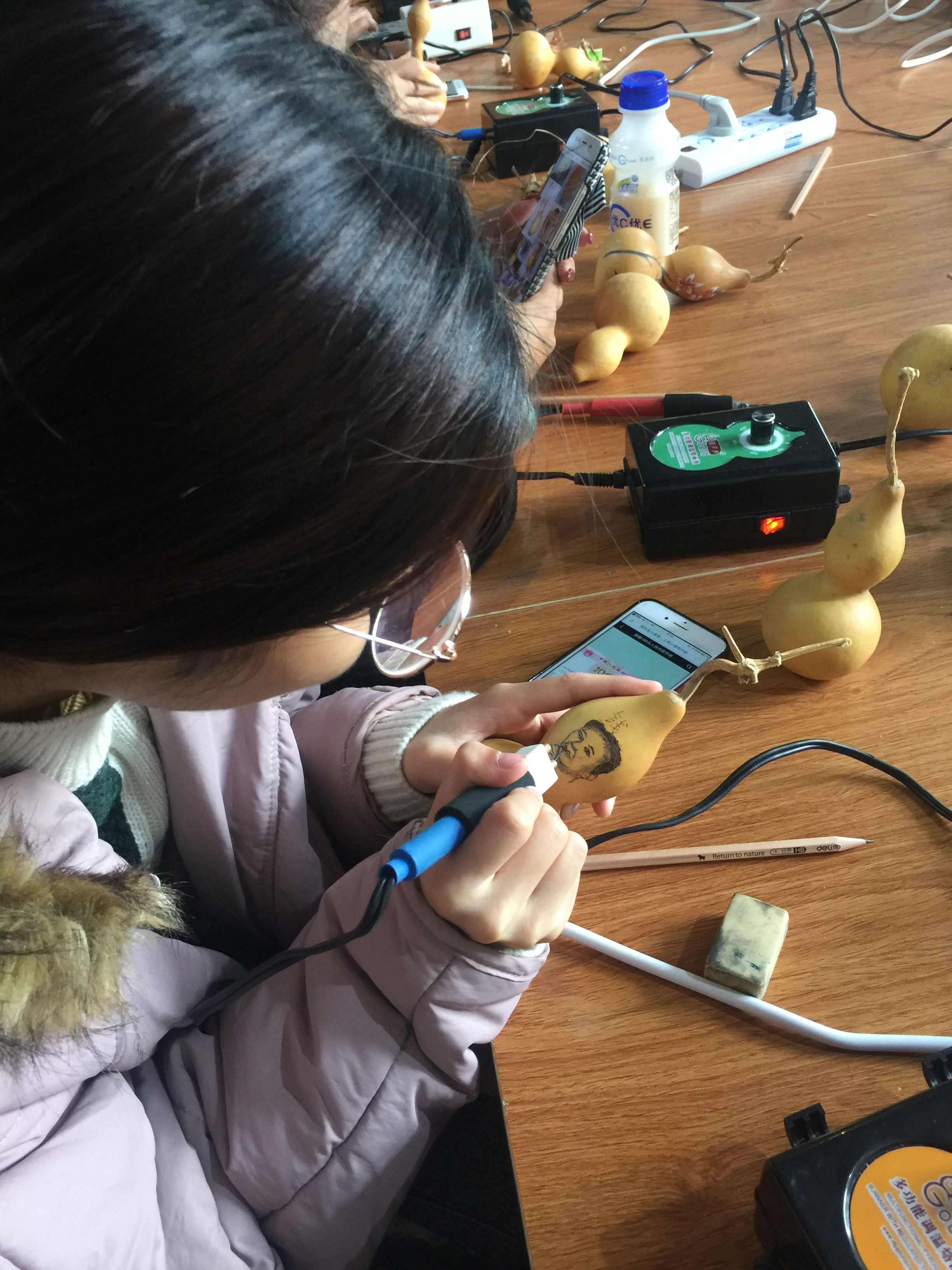 葫芦制作技艺可以成为大学生的基础课,并记学分,不是选修课是必修课!今天来自珠江学院艺术学院的大一学生来到葫芦庐上葫芦课!他们大学四年都会和葫芦开启不解之缘!其实这是艺术学院赵世勇院长和葫芦庐主赵伟早就有的想法,今年终于实现,下一步还将进行更多层面的合作!包括联合开发旅游纪念品、旅游景观装置搭建、葫芦庐系列产品包装设计等。
