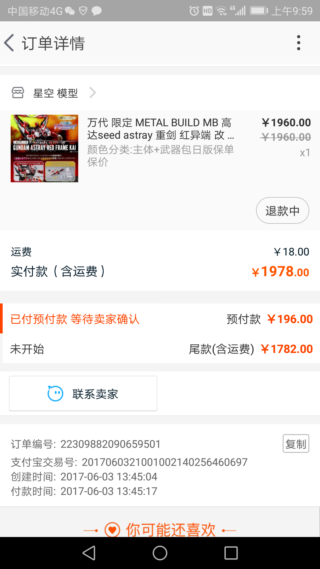 第一次定高达,对这家店也不熟悉,可以直接申请退款吗?