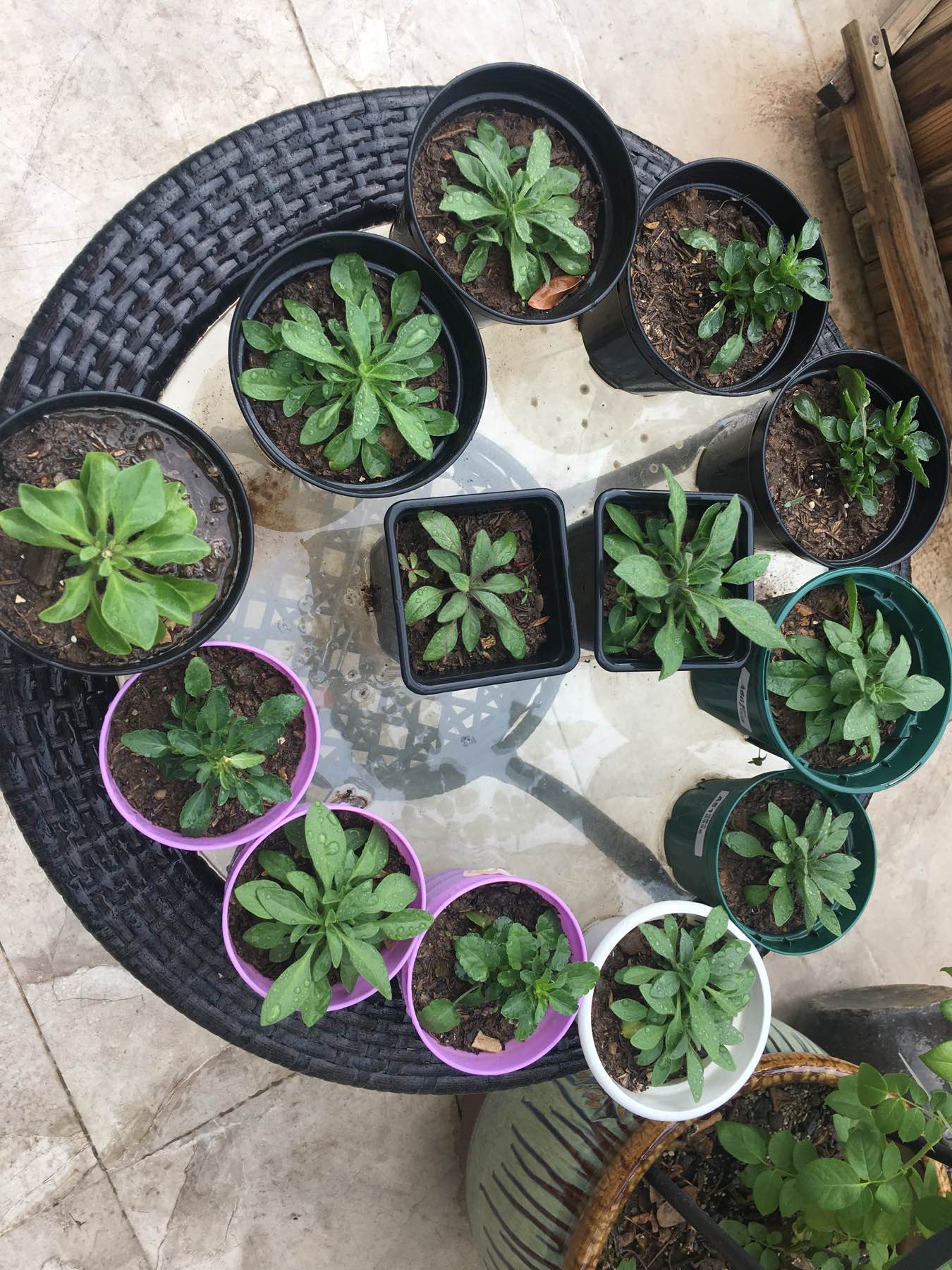 入了一批小苗,今天用小盆假植了!种了一桌的菜,给大家尝尝!