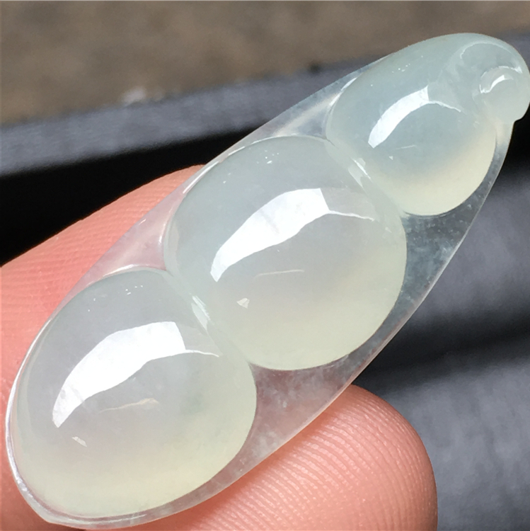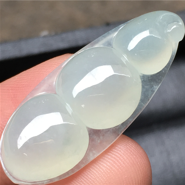 💰💰666,冰彩福豆吊坠:34.7-14.6-6mm,飘彩点缀,水足通透,饱满圆润,光滑细腻,品相端庄,完整价廉