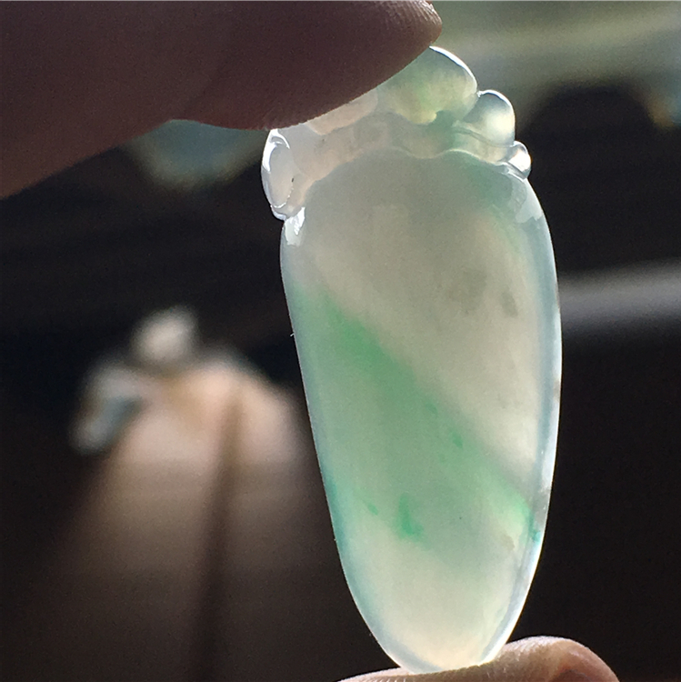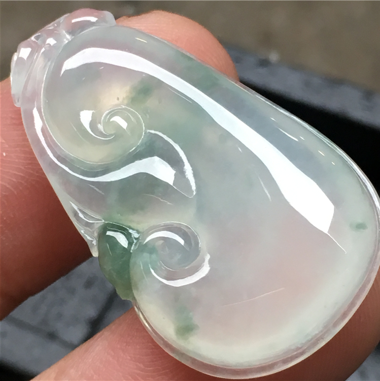 💰💰999,冰彩如意吊坠:33-19.2-5.4mm,飘彩点缀,水足通透,饱满圆润,光滑细腻,品相端庄,完整价廉