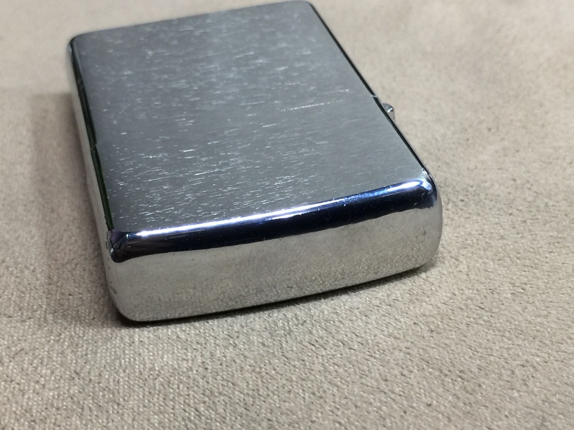 【详细描述】二手2011年3月拉丝光板,机身正常使用擦丝划痕,边角较多小磕,定义差品。铰链正常,原配11B内胆打火强劲,非原装底毡,火石弹簧缺顶针(装2粒火石即可,不影响使用)无包装。