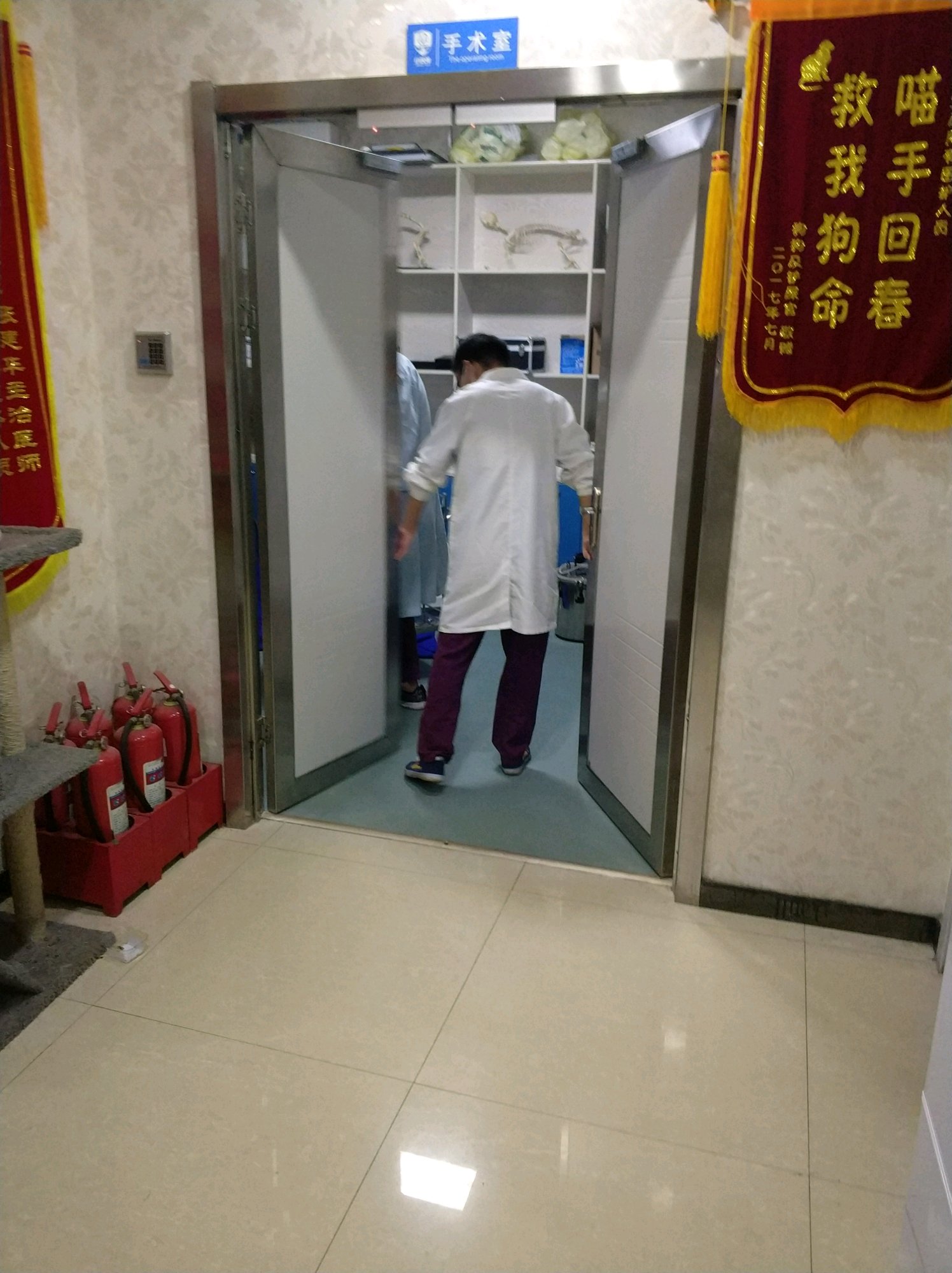应该就是宠物医院吧?手术室里的架子上还有动物骨头的标本。