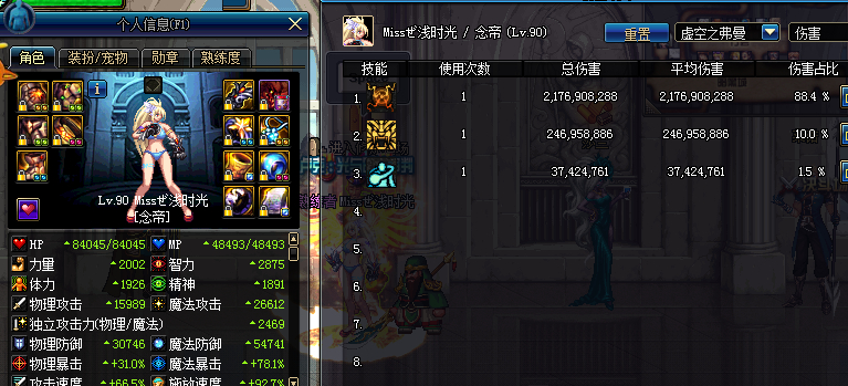 两个2050 两个国庆 肩膀5暴击 首饰三个 20 左曹安图 右槽15 耳环50 武器40魔攻,全是几乎没红字