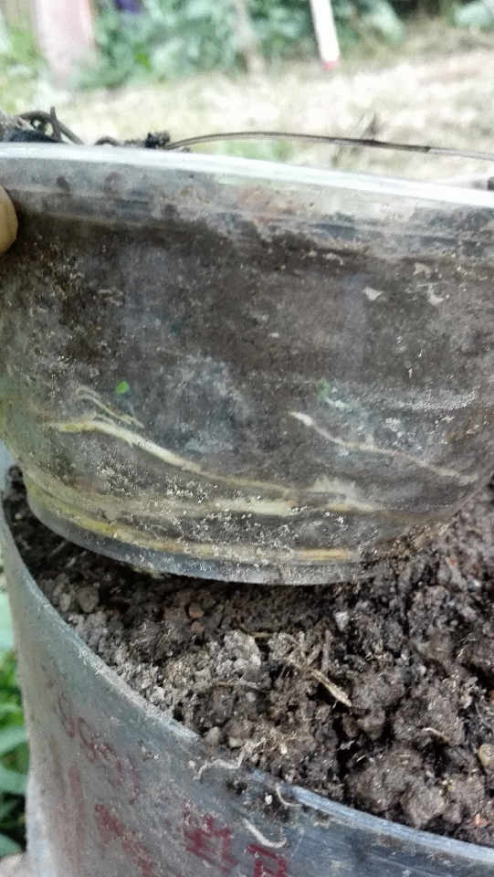 上个月将两边的树枝做低位高压,现在一次性碗长满了根,但又结了果,不结果早分了,长果了不知道能不能分。