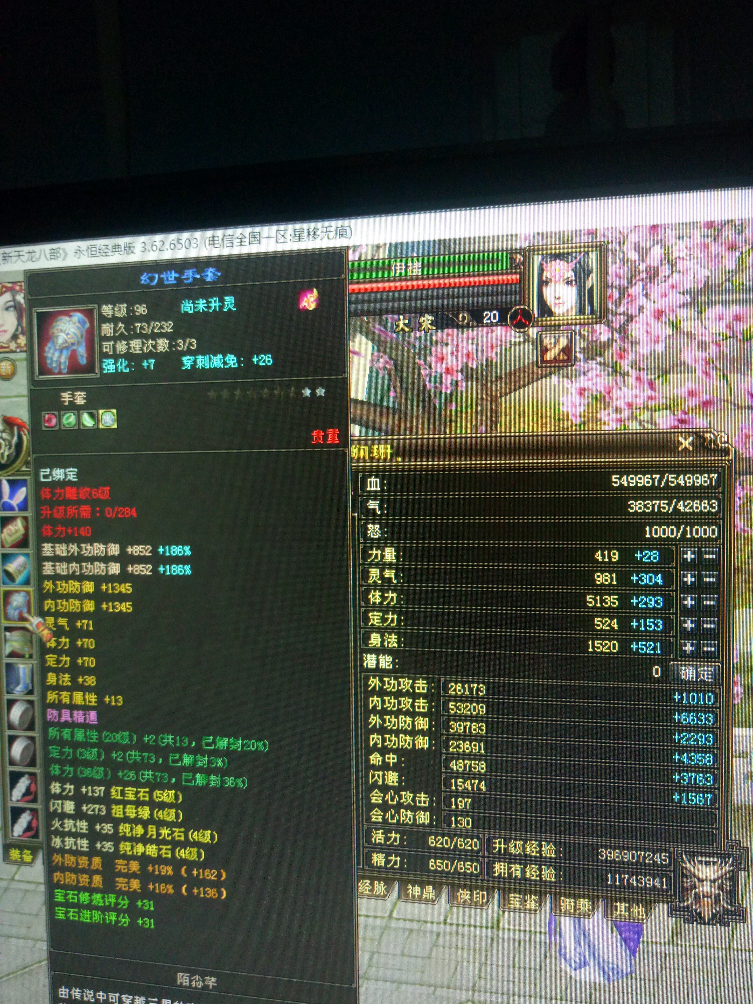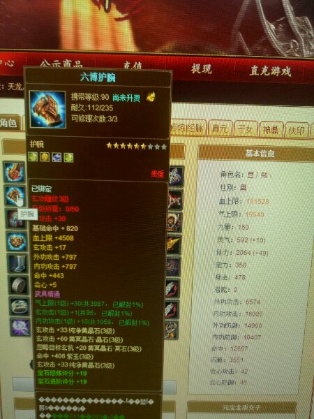 天若花瓶女逍遥,14w分,带暗器55w血,5740属性。体力宝石全部5级