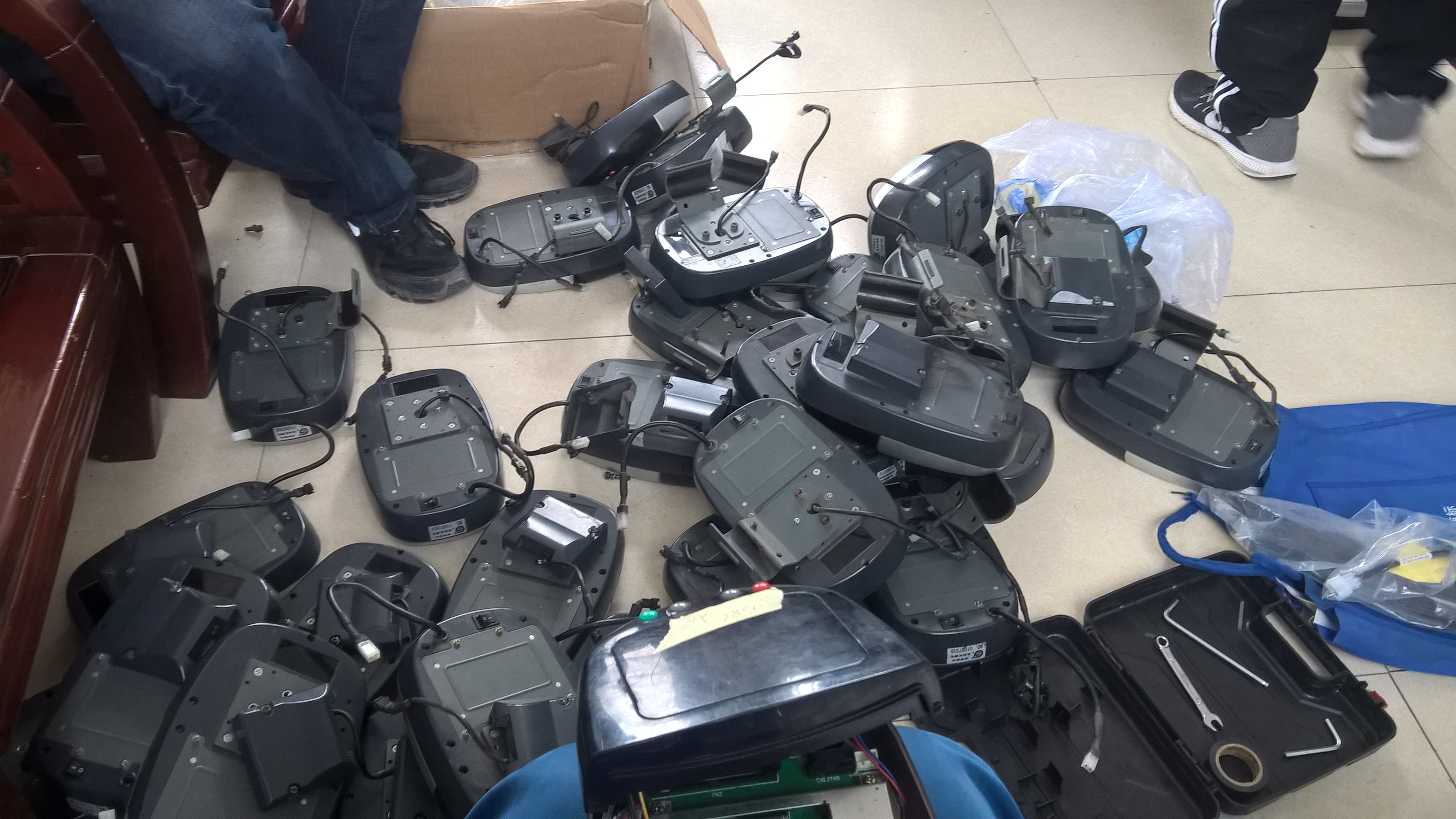 我参与了更换刷卡机的任务,新的刷卡机安的时候忙不过来就没拍,不过旧的就有点时间拍了,而接下来的这个活公司里就有一半的人没见到了,上午班的下班了或是在路上跑车了。
