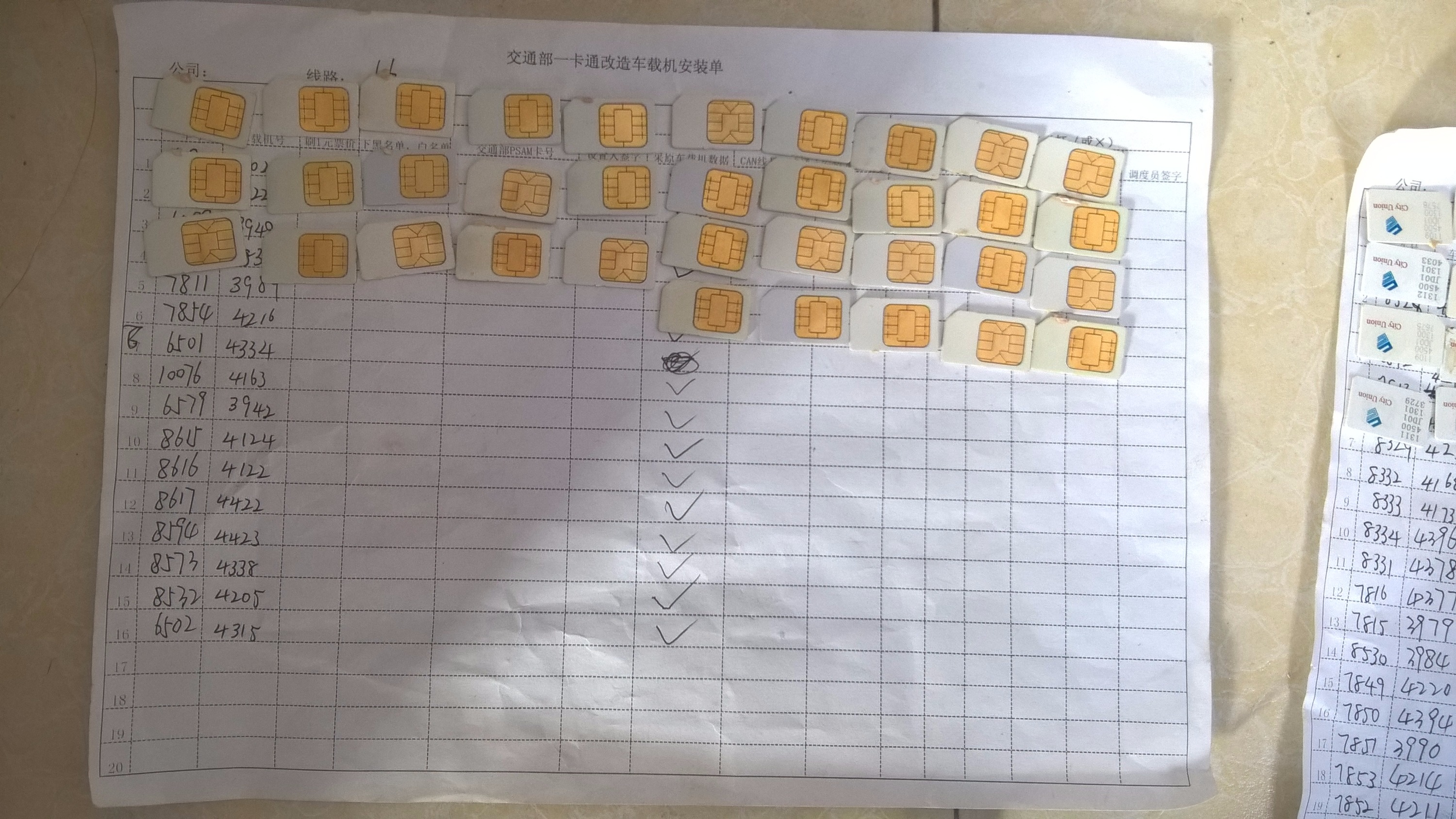 每次线路上总有几辆车一保,二保,零修,出专车,事故,或是刷卡机,拿错,坏掉,没设好数据刷卡不要钱的。总之就没有一条线一次性全部装好的。