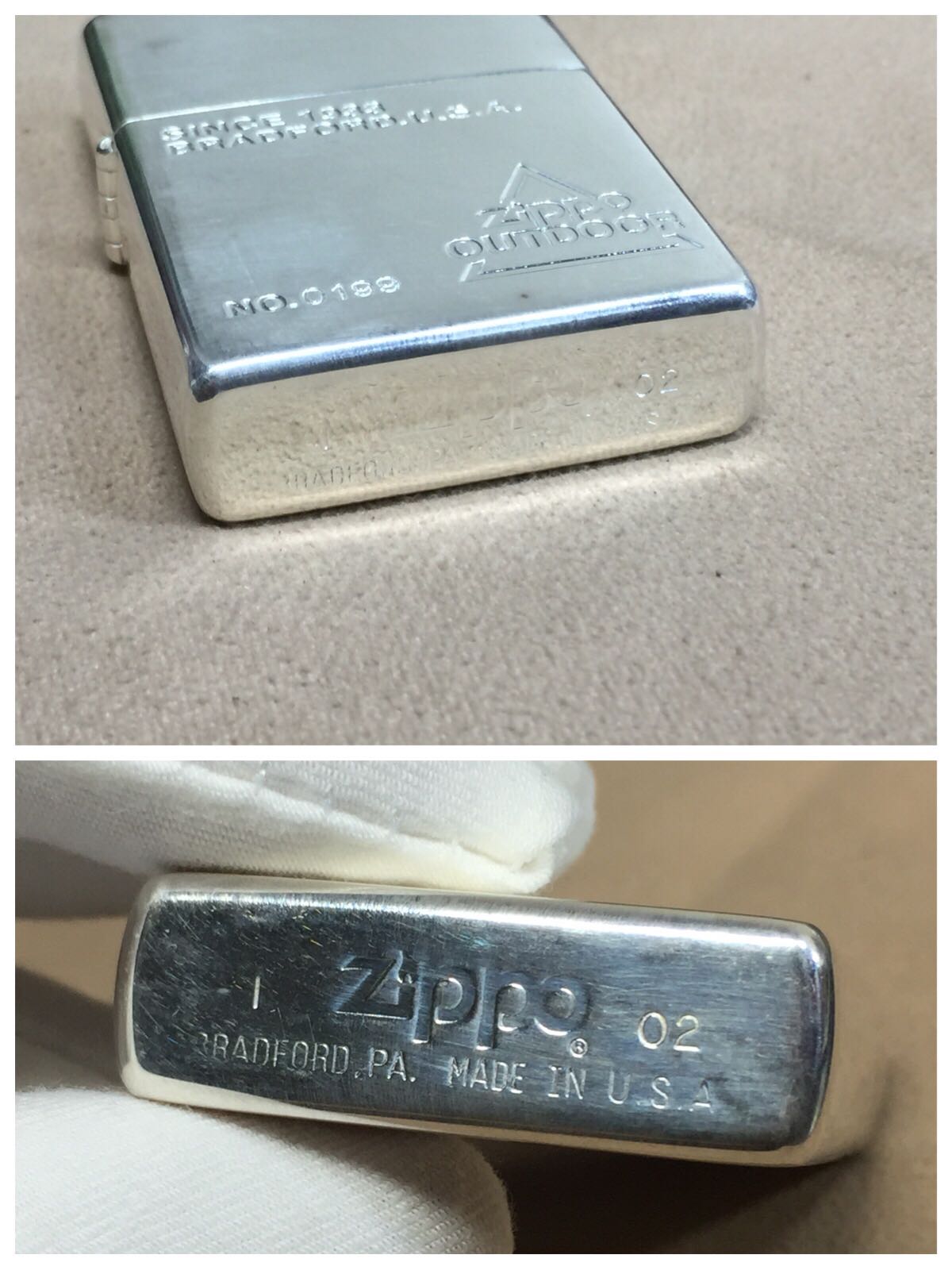【具体描述】2002年9月 OUT DOOR系列镀银机 限量编号0199。该机未使用,保存及运输不当,镀银层较多擦痕,局部磨损,轻微氧化,照片均高光拍出。铰链正常,原配全新02J内胆,近代黑纸盒包装。