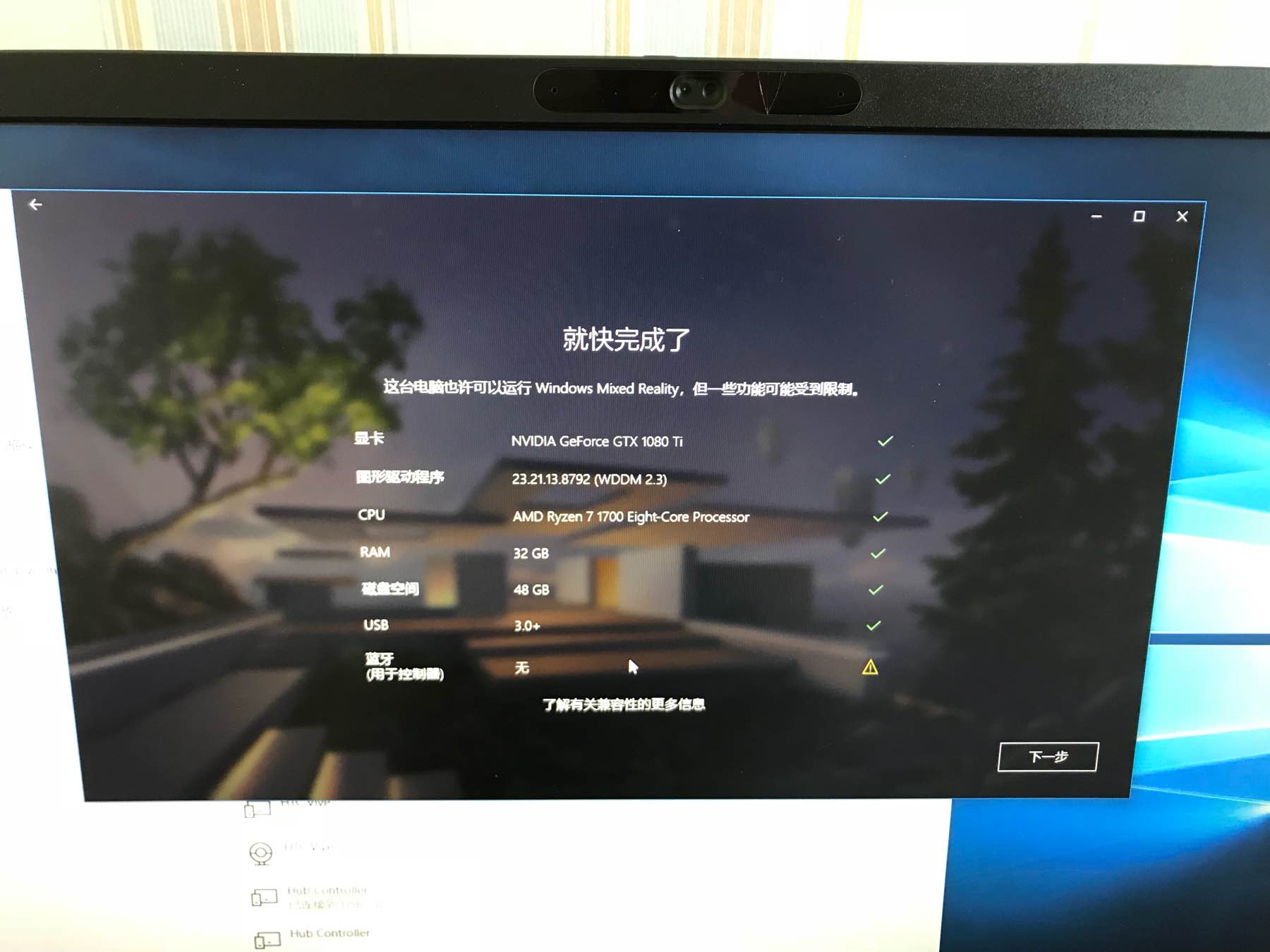你得有蓝牙!不然手柄是没法用的,虽然我早有准备,买了一个USB蓝牙插上,但我手贱安装了那个蓝牙的额外官方驱动,然后微软就不认了...后来卸了驱动,删除蓝牙设备,重新插蓝牙,用系统自带的驱动认出来,才能顺利连接...这个事情耽误了我半个小时...想用MR的务必做好准备