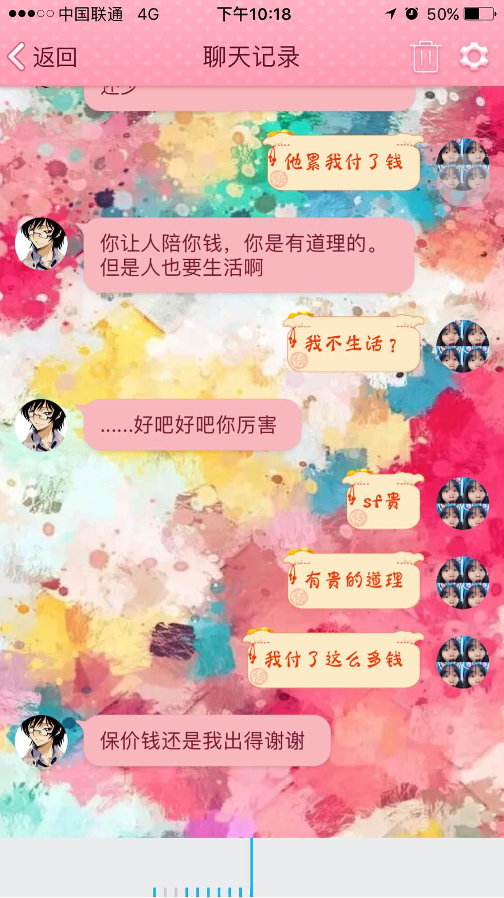 后来说我厉害厉害 他开始松口说他自己贴钱再给我50 他上班不容易