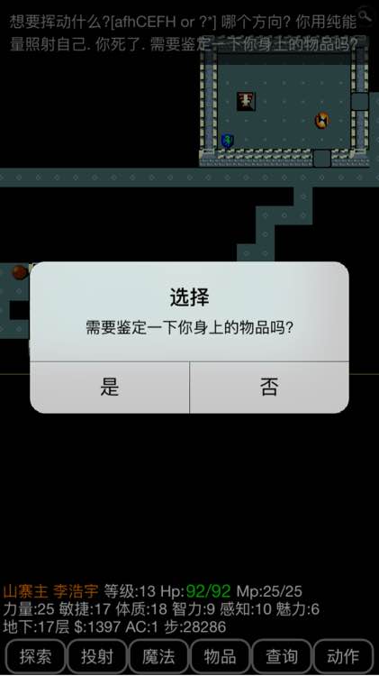 都怪以前养成的坏习惯,经常误操作投掷物品的时候就点一下探索(快捷键.),然后就会提示不能对自己投掷,就取消了