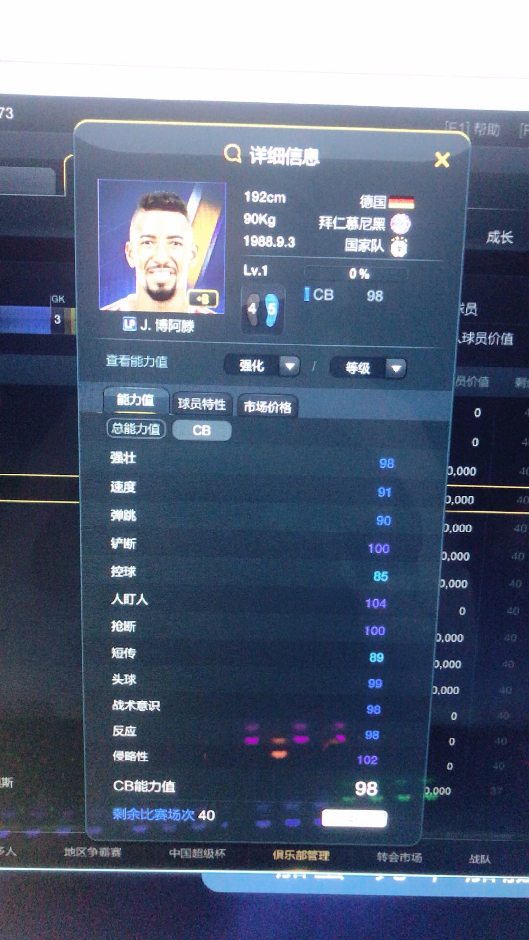 我的拜仁套6卡lp博阿滕7卡17胡梅尔斯,要速度有速度要身体有身体要头球有头球,唯一一个缺点就是不灵活转身慢,所以后腰搭配加了灵活的蛤蟆。
