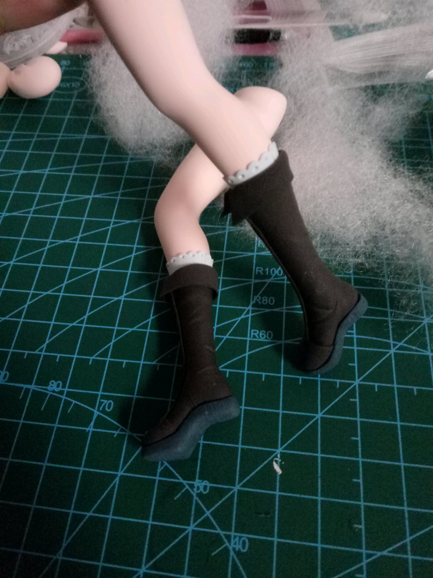 这步比较简单啦 因为要做靴子 所以我们做半截袜套 这样减少包靴子以后的厚度