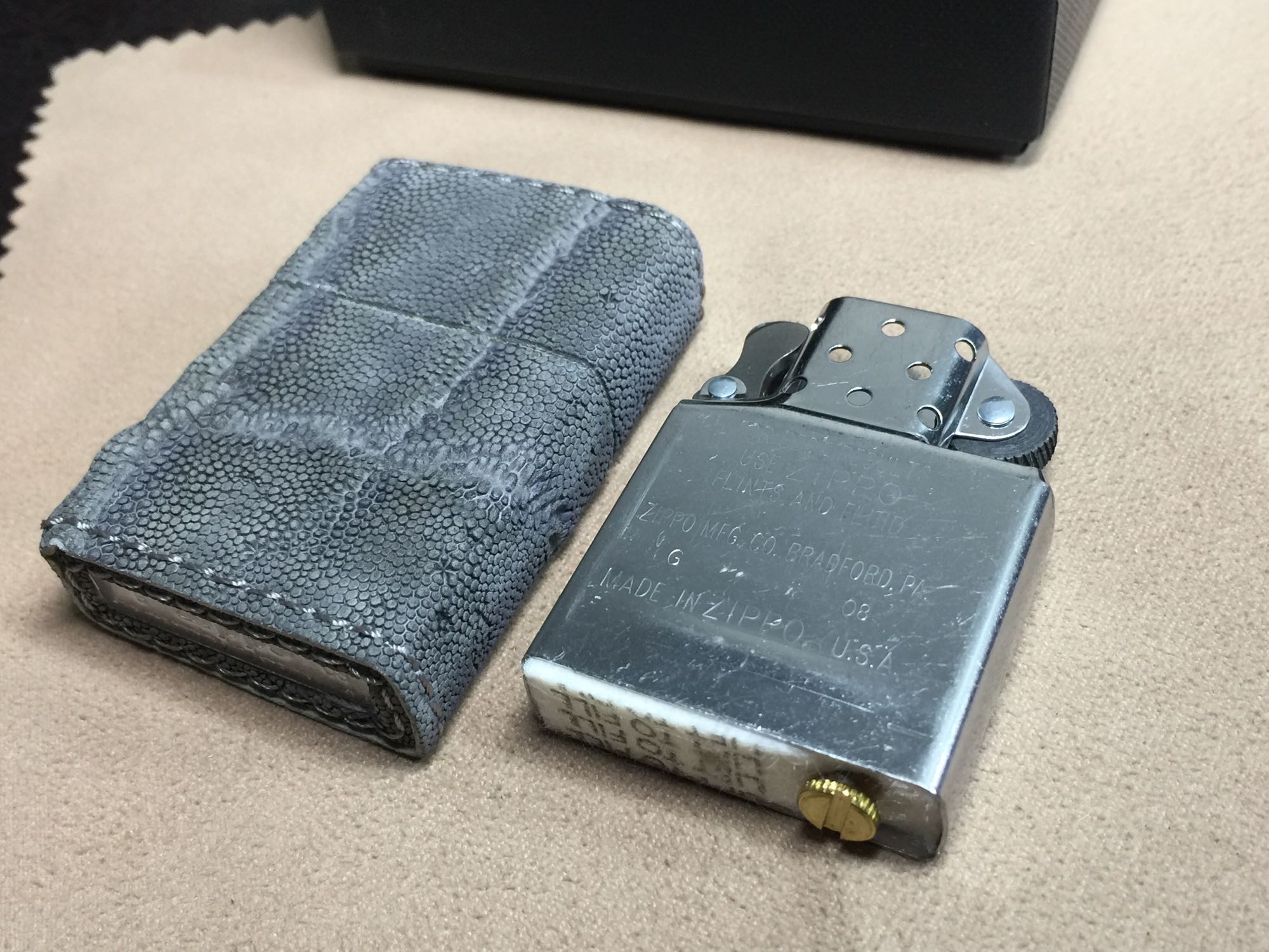 【具体描述】全新2008年7月 象革机,手缝非洲X真皮工艺。机身无瑕疵,褶皱为天然纹理。原配全新同年同月内胆,原盒原说。
