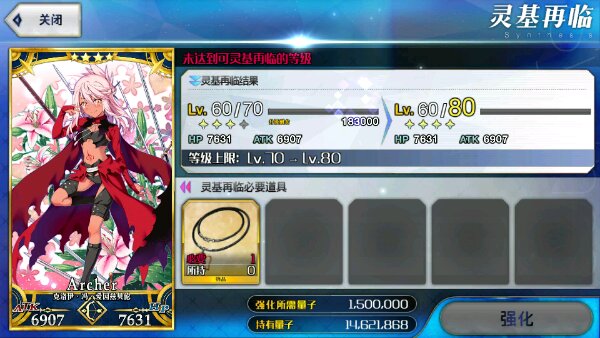 之前升宝具的时候不小心把50级的小黑喂了1级的,然后就如图所示,是不是升不了80级了