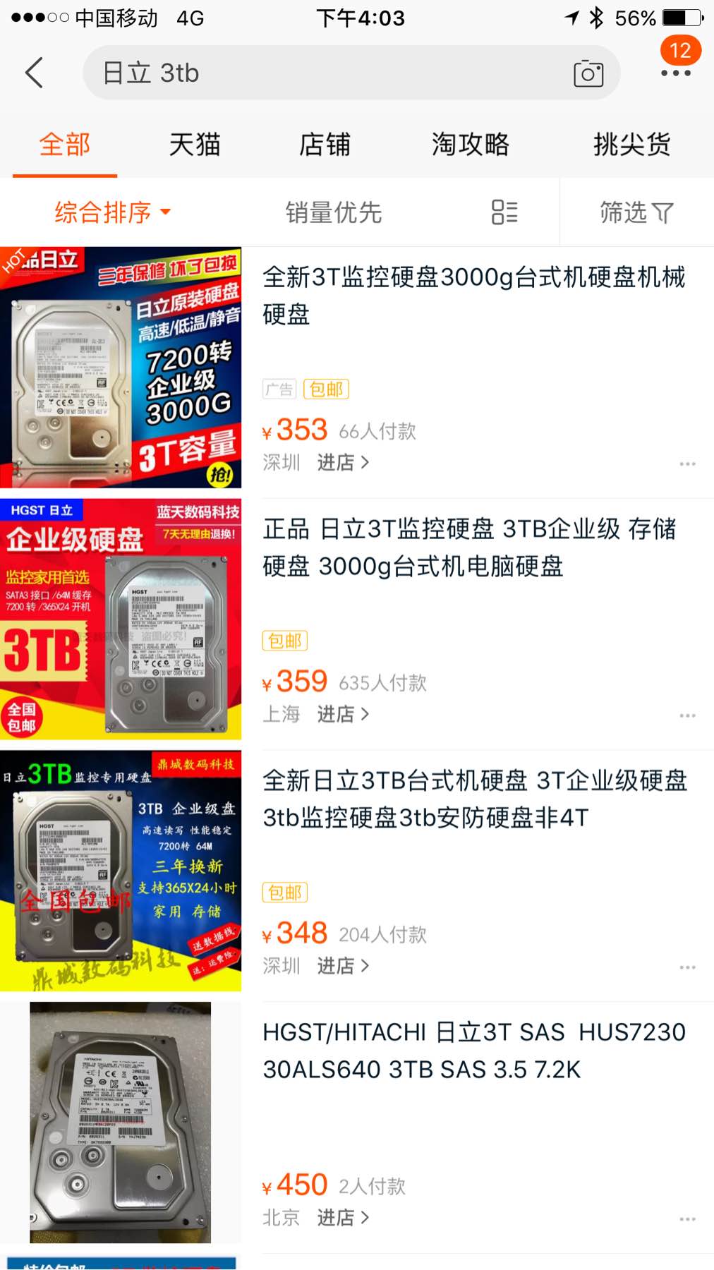 你们看看,这些硬盘,3T就这点钱,我到hgst官方店里起码千百来块。为什么?