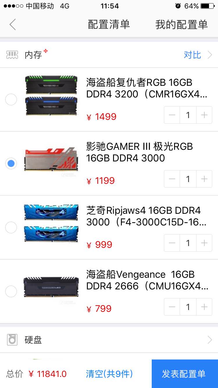 内存 影驰 16g rgb 或 海盗船复仇者16g rgb