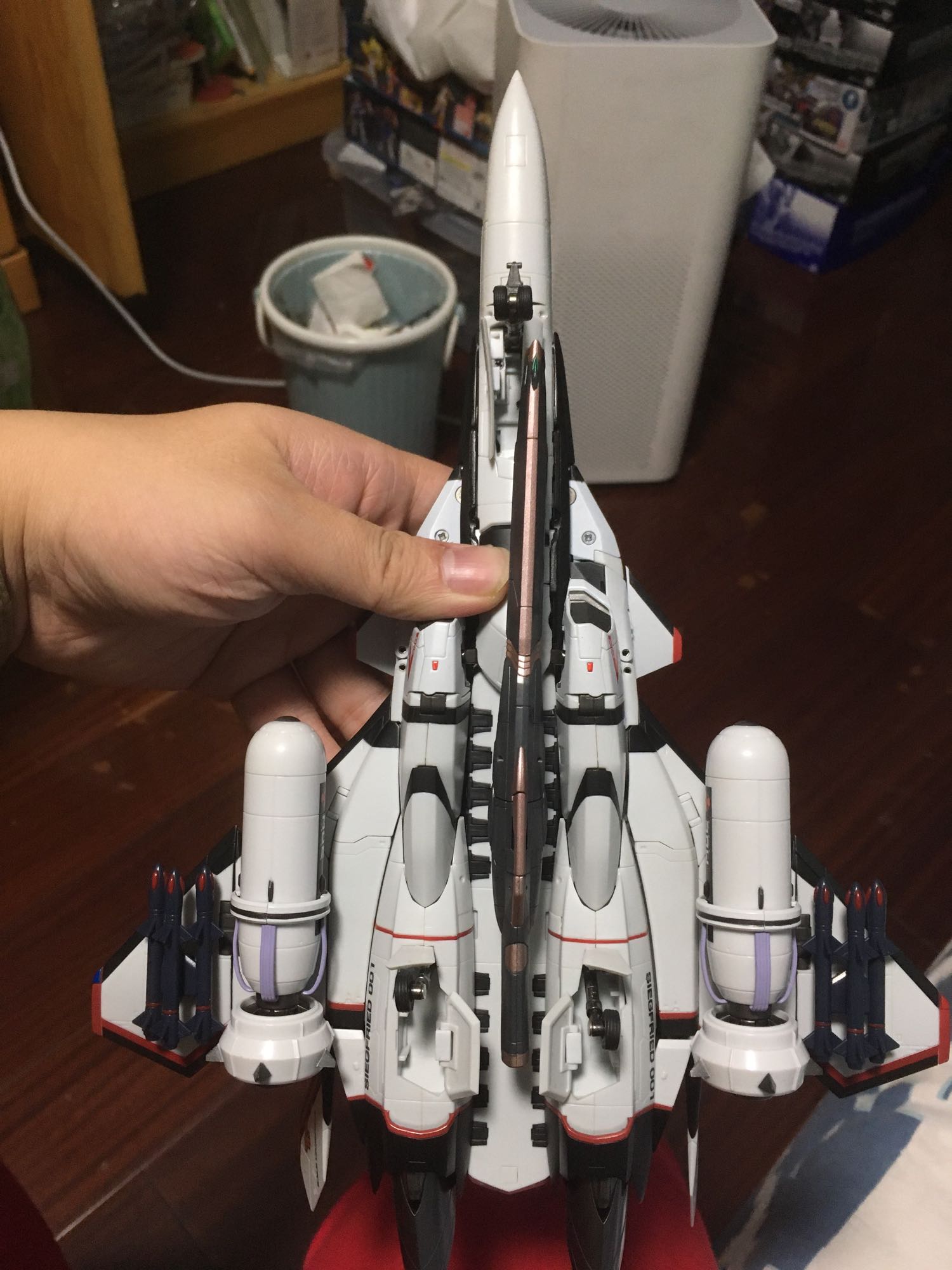dx超合金vf31f的sp包昨天收到了,穿上之后时髦值大幅up,河森这玩具dlc大法真是让人无法拒绝,托31系3.0结构的福,即使加上sp包各形态依然站的很稳,甩前段时间到手的vf27一条街,三形态变完一遍后我感觉又掉了一点漆了