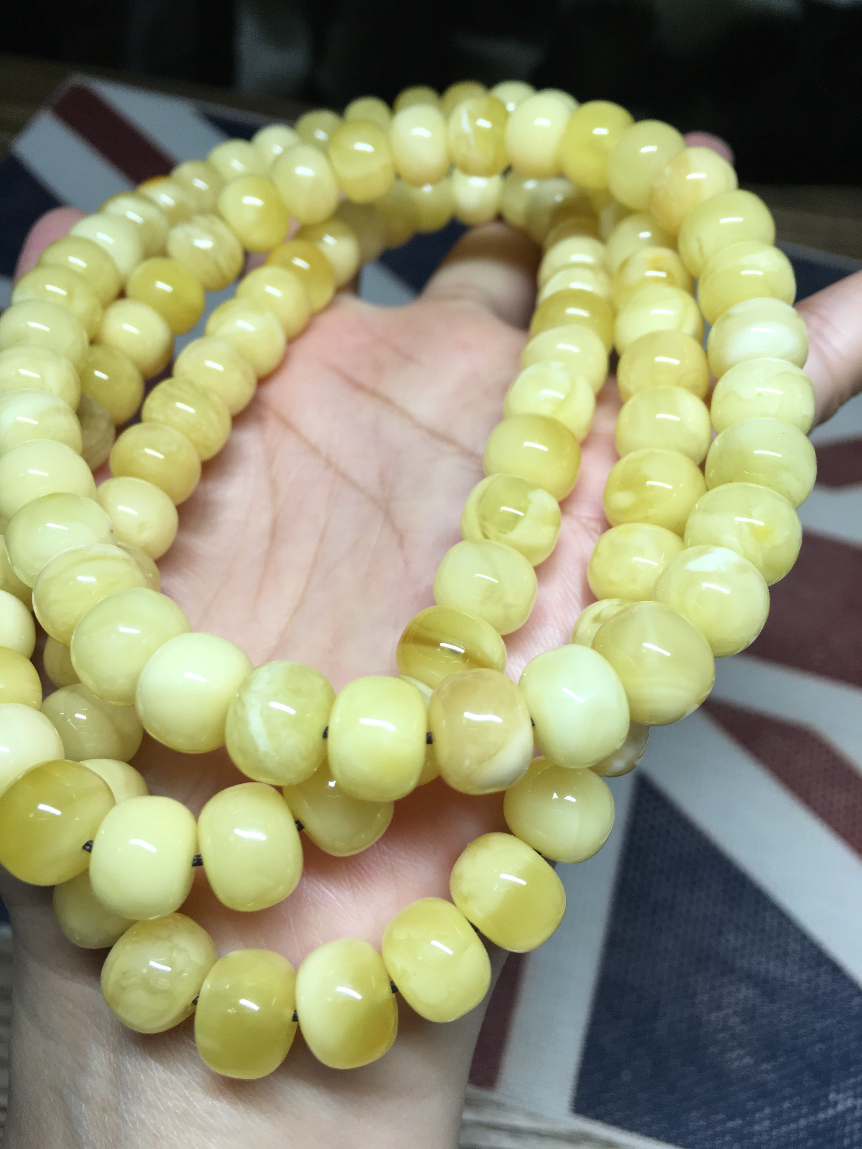 【物品质地】傲世精品❣️,颗颗手工打磨,镜面抛光,完美老型俄料白花蜜蜡鼓珠108,