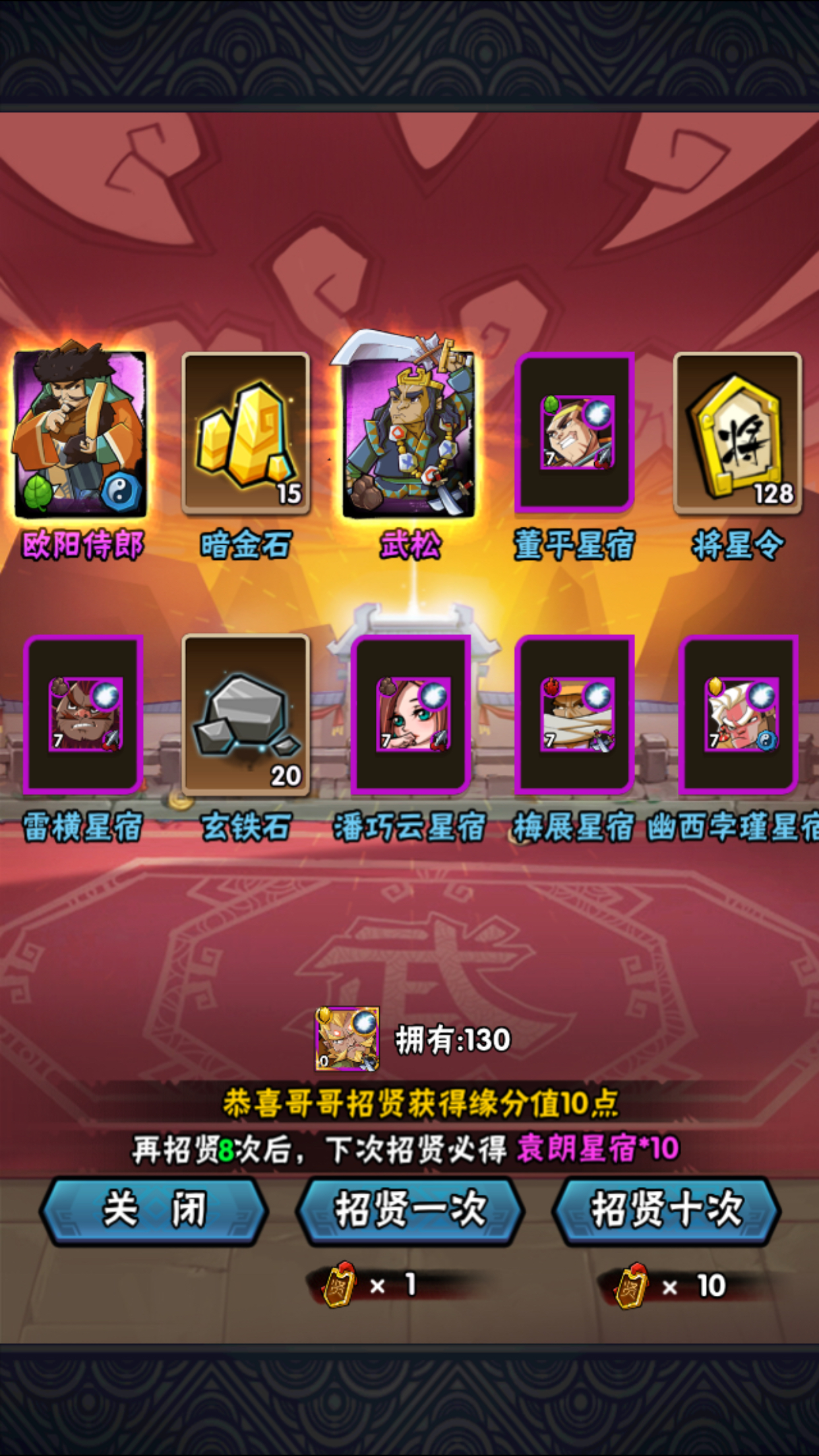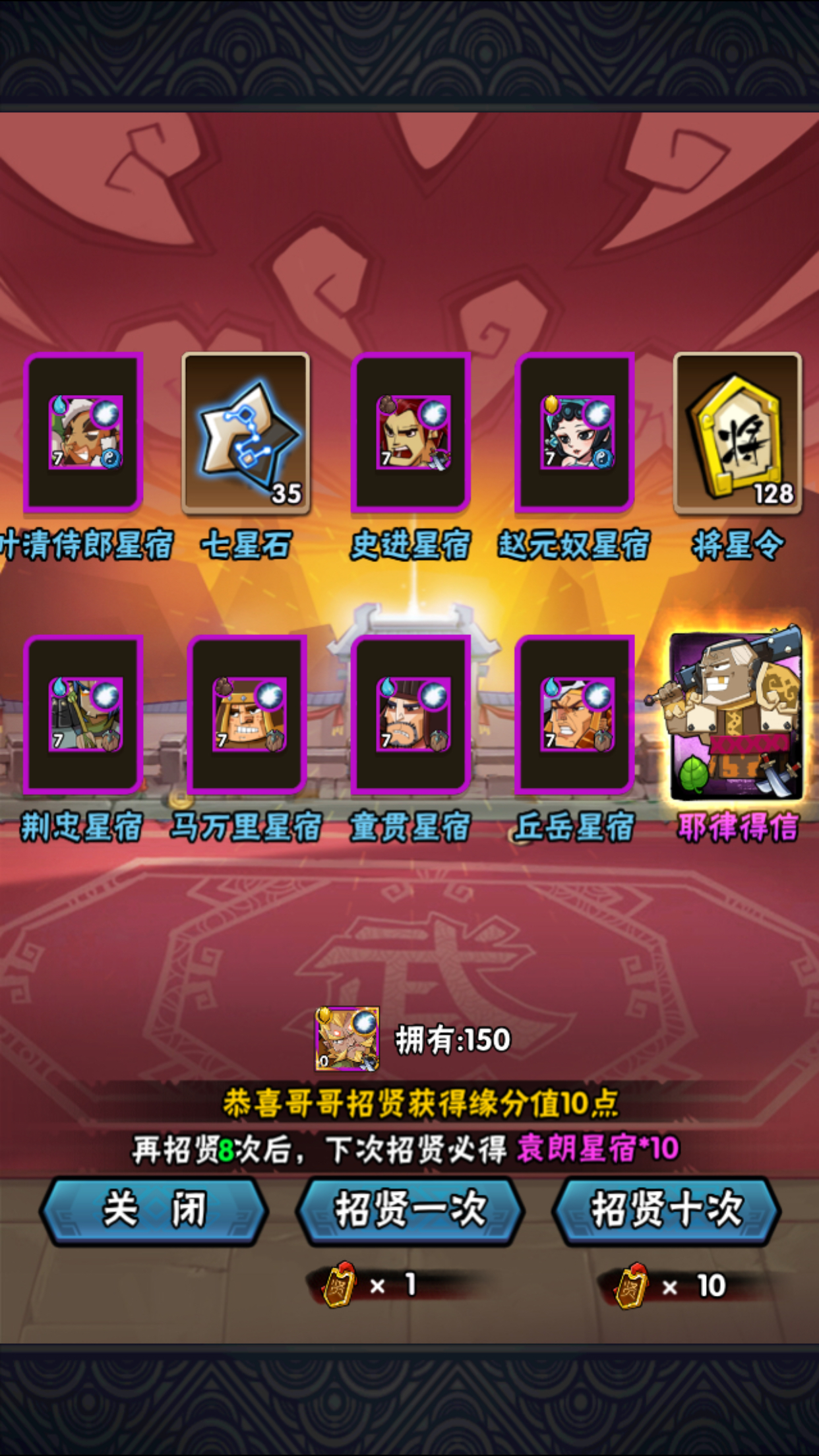 买了160个牌子,16个10连。明天直播