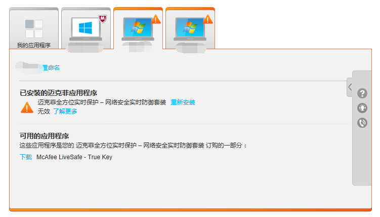 在新电脑上装McAfee的时候发现之前的机器信息还记录在账户里