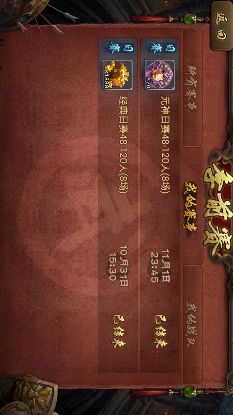 第一个冠军竟然是秦琼元神日赛,这也是宝具赛第一次前十。之前经典赛就三次前十,最好一次第三。本来昨天那场经典第三局不被雷炸死就至少前十的,今天一直有点郁闷的,本来也很少打比赛,废时间又看运气。秦琼赛开始前4分半钟我看人数才几个,就报了,心想肯定人数不够退票。没想到还是满120人参加,正好有空打下。