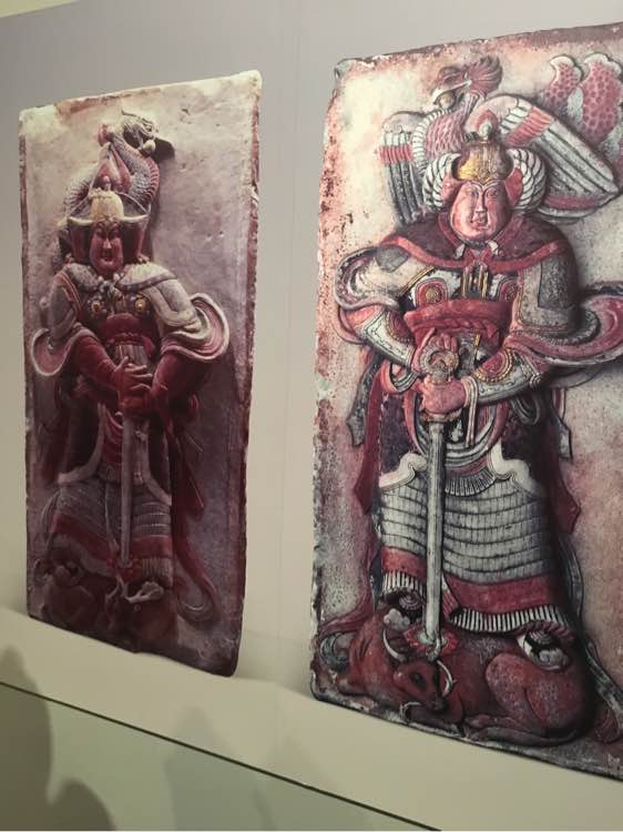 左边五代石像,右边唐代武士俑