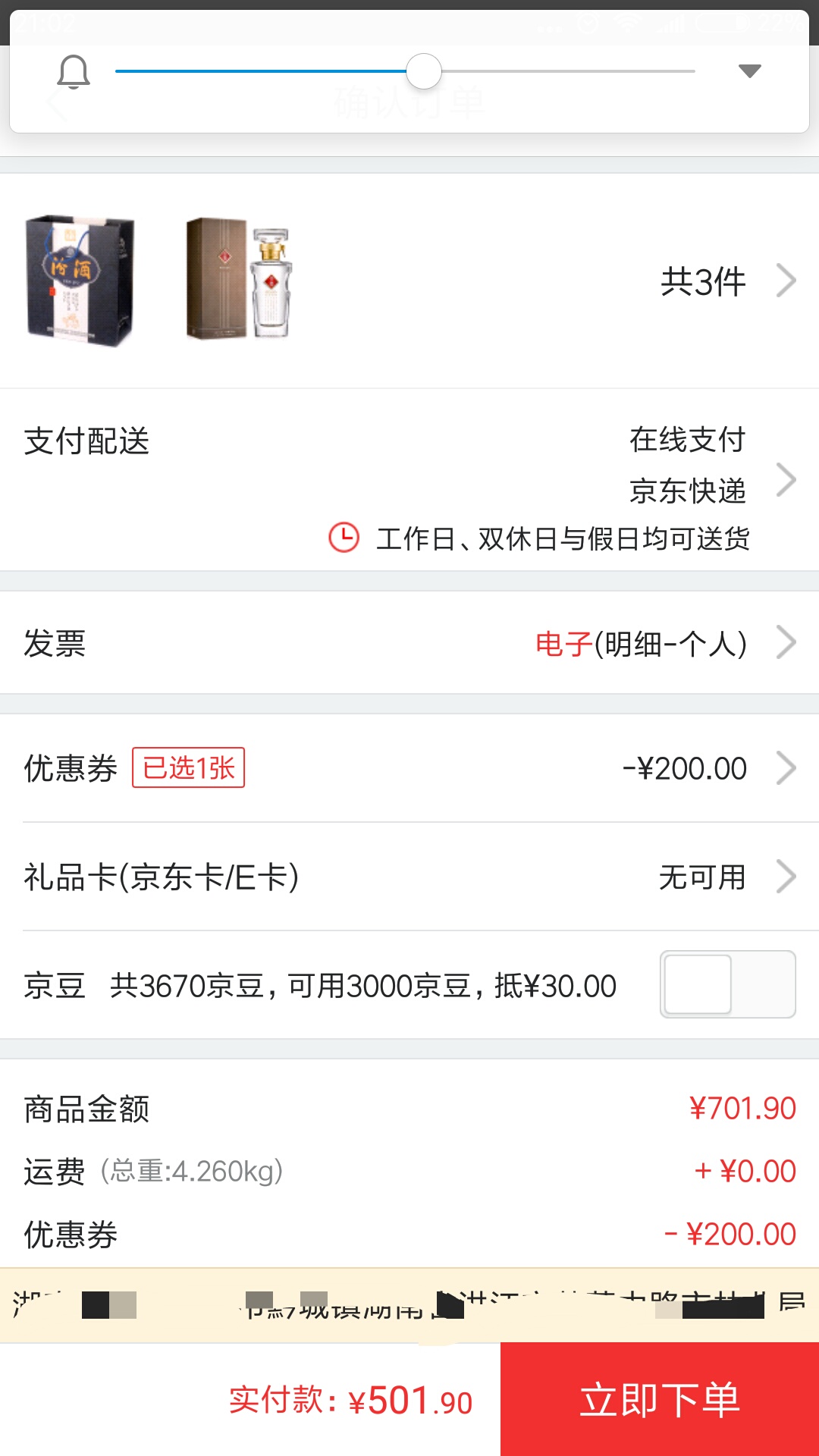 两瓶文君酒加个手提袋凑单,要是零点能抢个50的支付券就付款。大家看值不值?