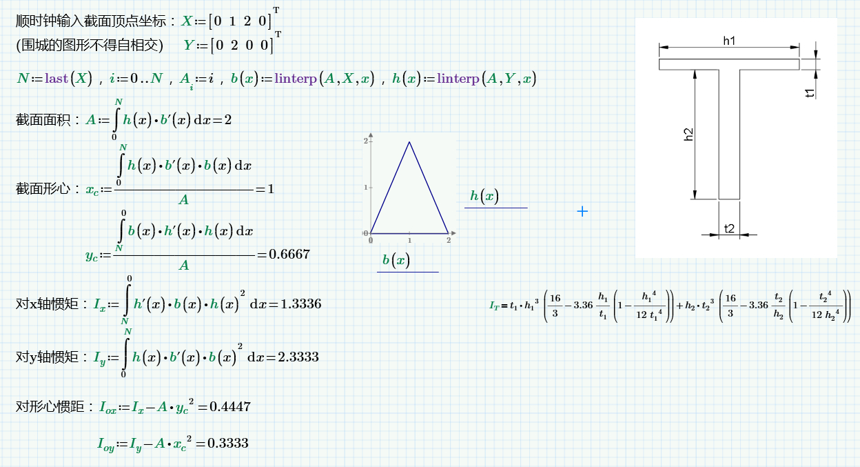 他这种思路没法求截面惯性距特性,我下午回家贴出出来类似的(非常繁琐,概念也是很清晰)可以求截面特性的法子