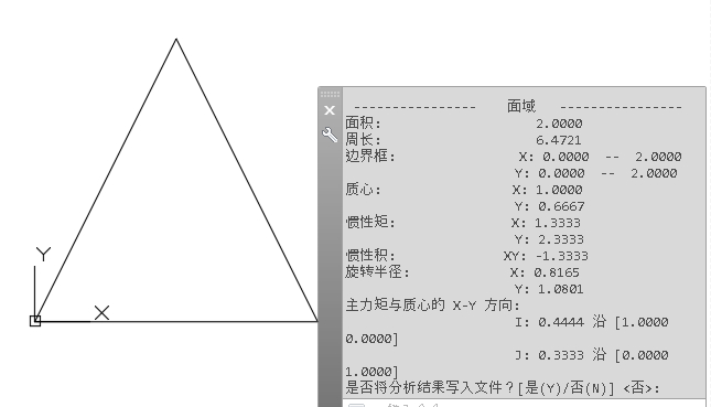 这个【1 0】表示从坐标原点【0 0】至【1 0】方向轴也就是质心处x轴方向惯距,另一个同理。