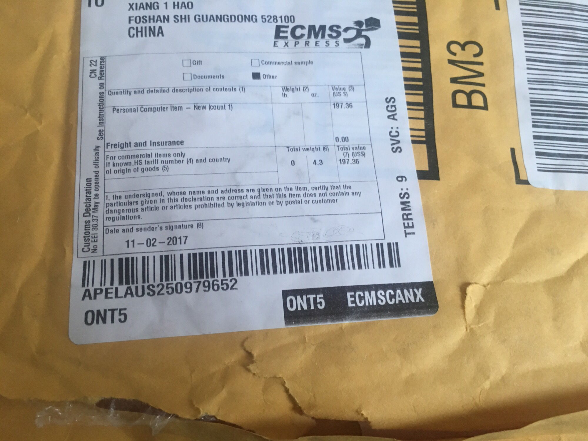 11月2号下的单刚刚就到了