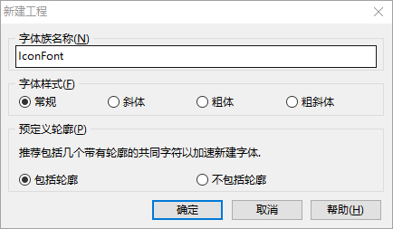 3. 打开FontCreator,文件-新建,输入工程名称,确定。