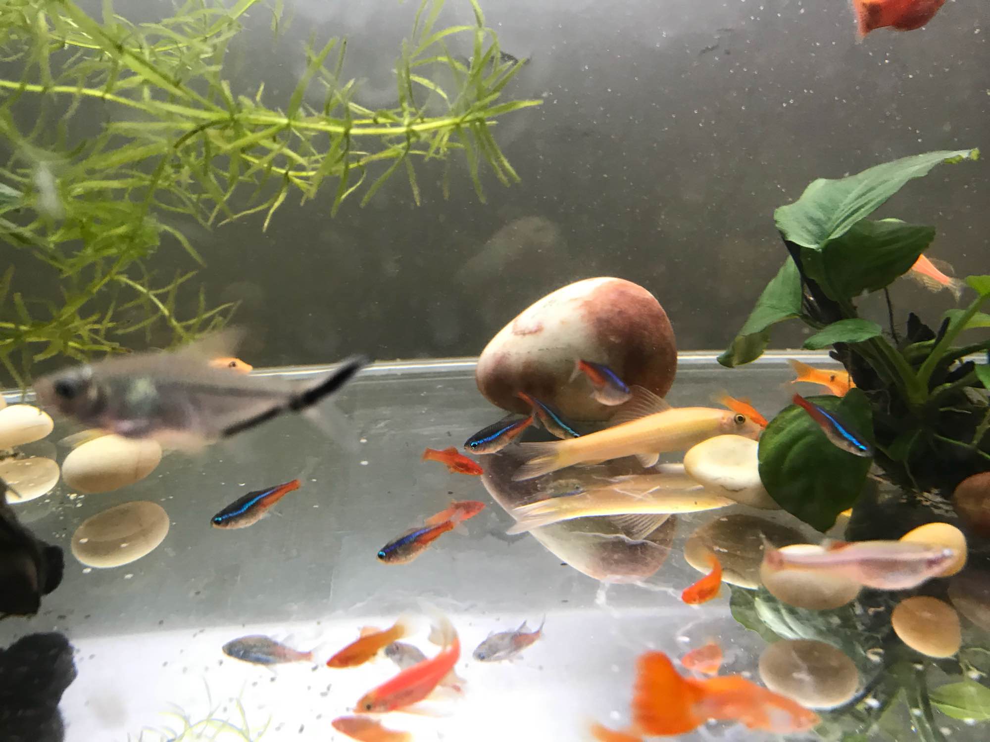 图中黑尾巴,斜着向上的,鱼店老板送我的,他说也不认识,不知道什么品种的灯