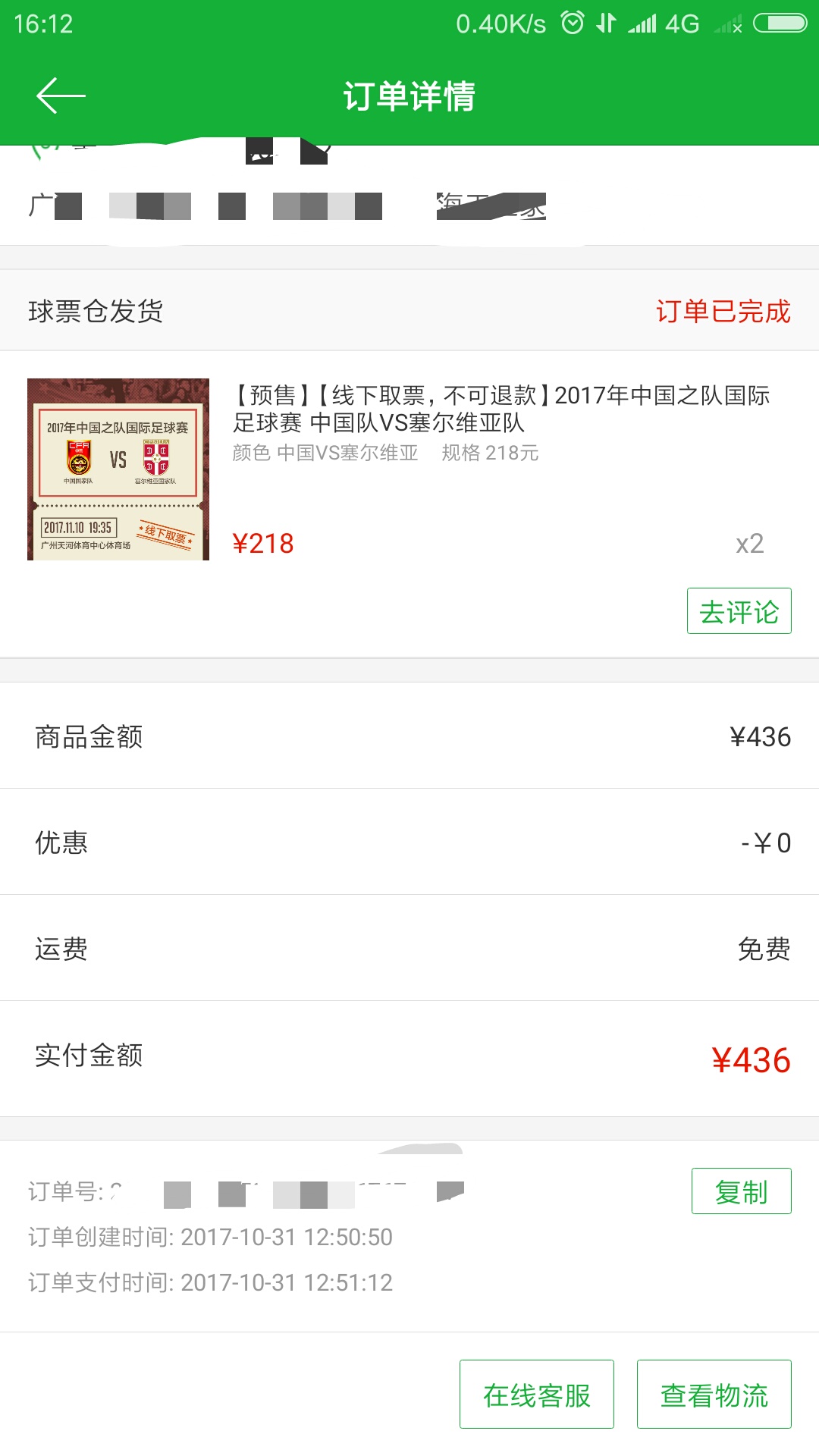 吧友,有一起看球赛的吗,低价售一张原价218球票,朋友临时有事来不了。。。