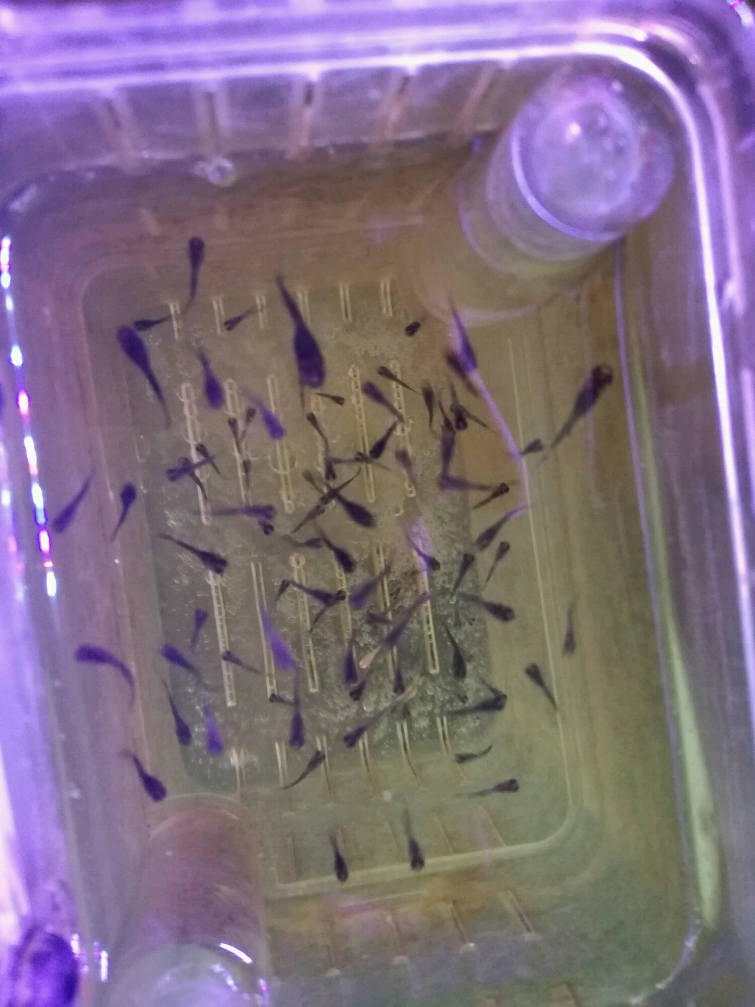放到大点的空间,喂点丰年虾,长得快