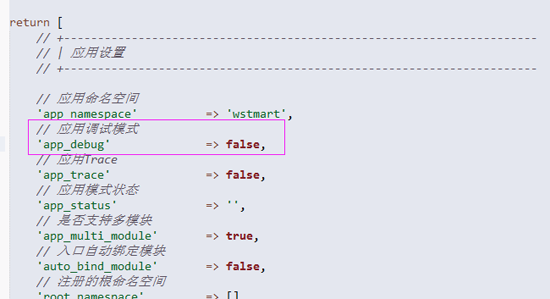 2.在配置文件中设置自定义错误处理页面*要启用自定义错误处理页面,首先得把config.php文件中的debug设置为false,否则将无法正常使用自定义错误页面。