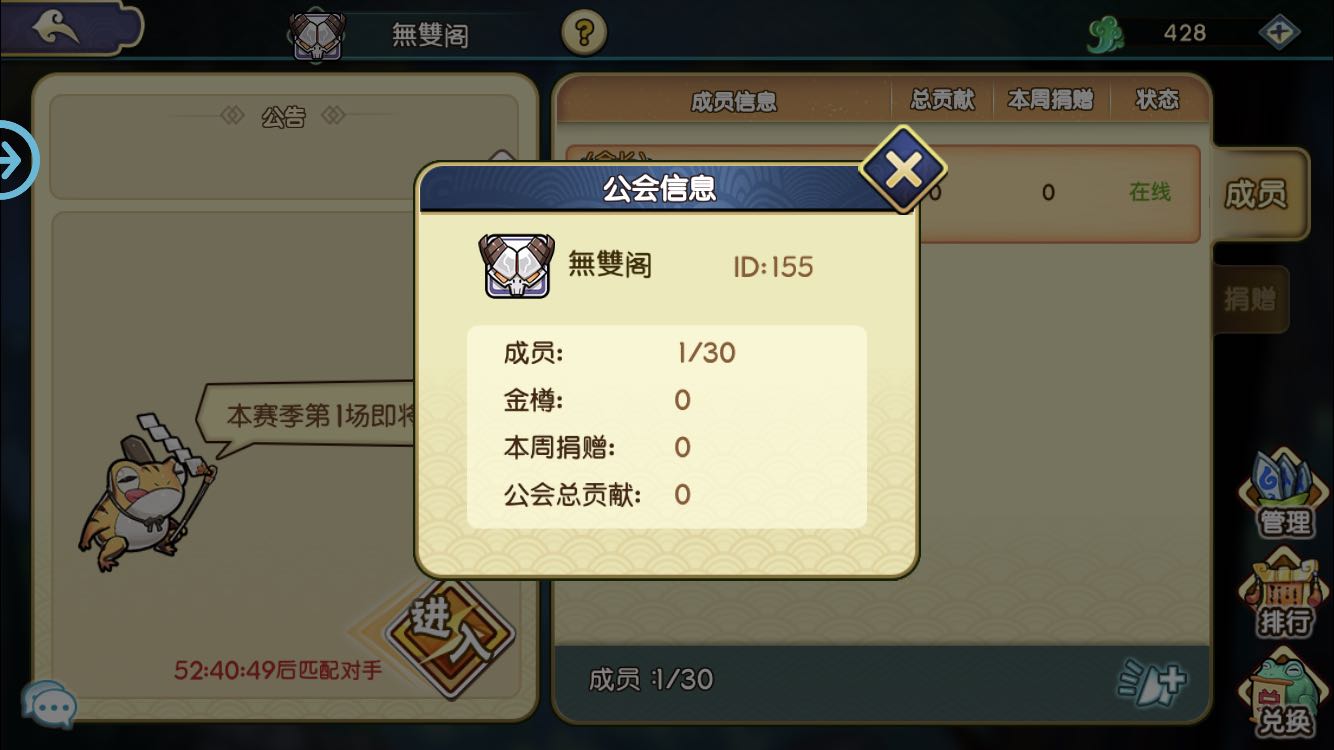 2区公会id155 無雙阁没有进来的朋友可以进来暂时是休闲工会