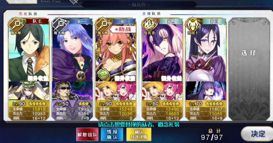 输出只有孔明,C妈和PY的C狐红卡都是挠痒痒,想起来用令咒的时候孔明已经光荣了。
