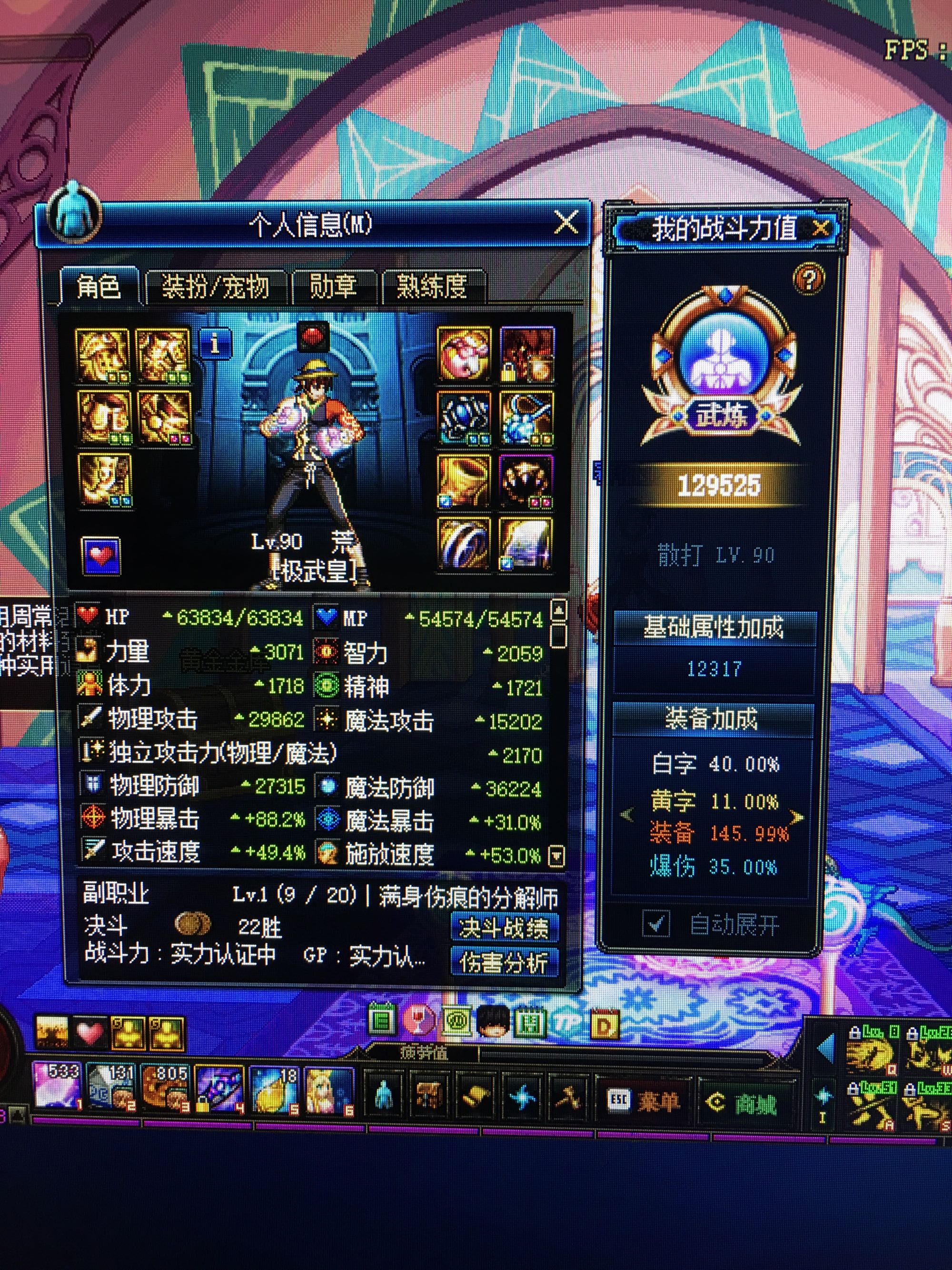 晒出你得面板看看,我和你差不多装备,就肩膀右槽不同,我是12爆伤肩和空城,面板差点35000三药宠物破招刚破10E