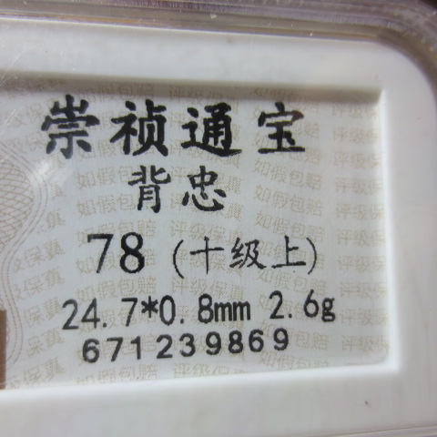 1 崇祯背忠 360元 三包 华夏说十级上也是醉了 钱币还不错