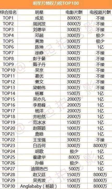 近日,香港《南华早报》13日公布了最新的中国演员片酬排行榜单。