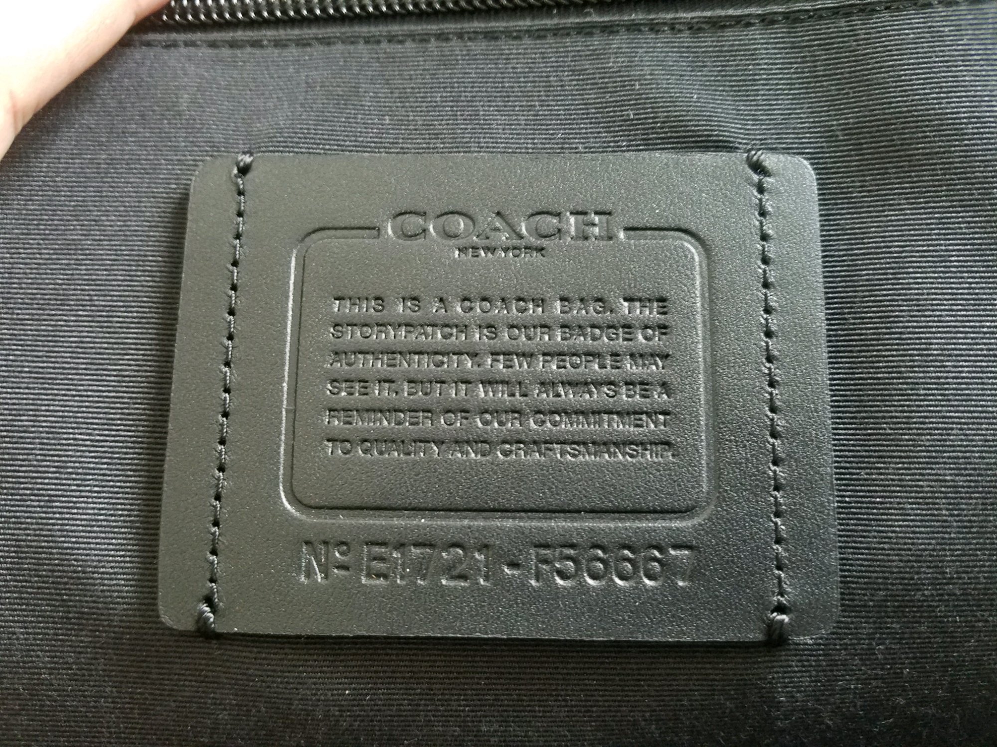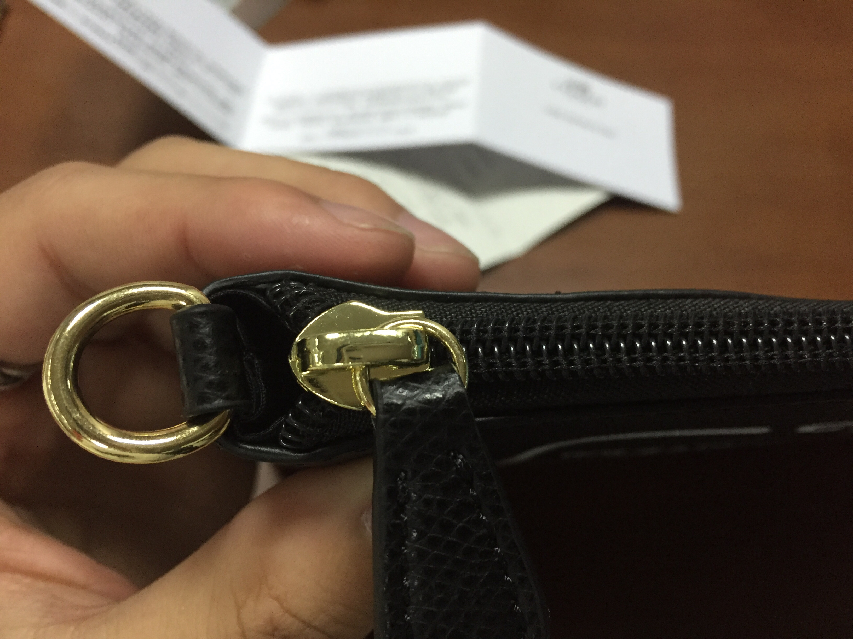 在天猫王府井百货旗舰店买的,没有小票,皮质摸起来有点硬,然后送的防尘袋也怪怪的,请楼主帮我看看