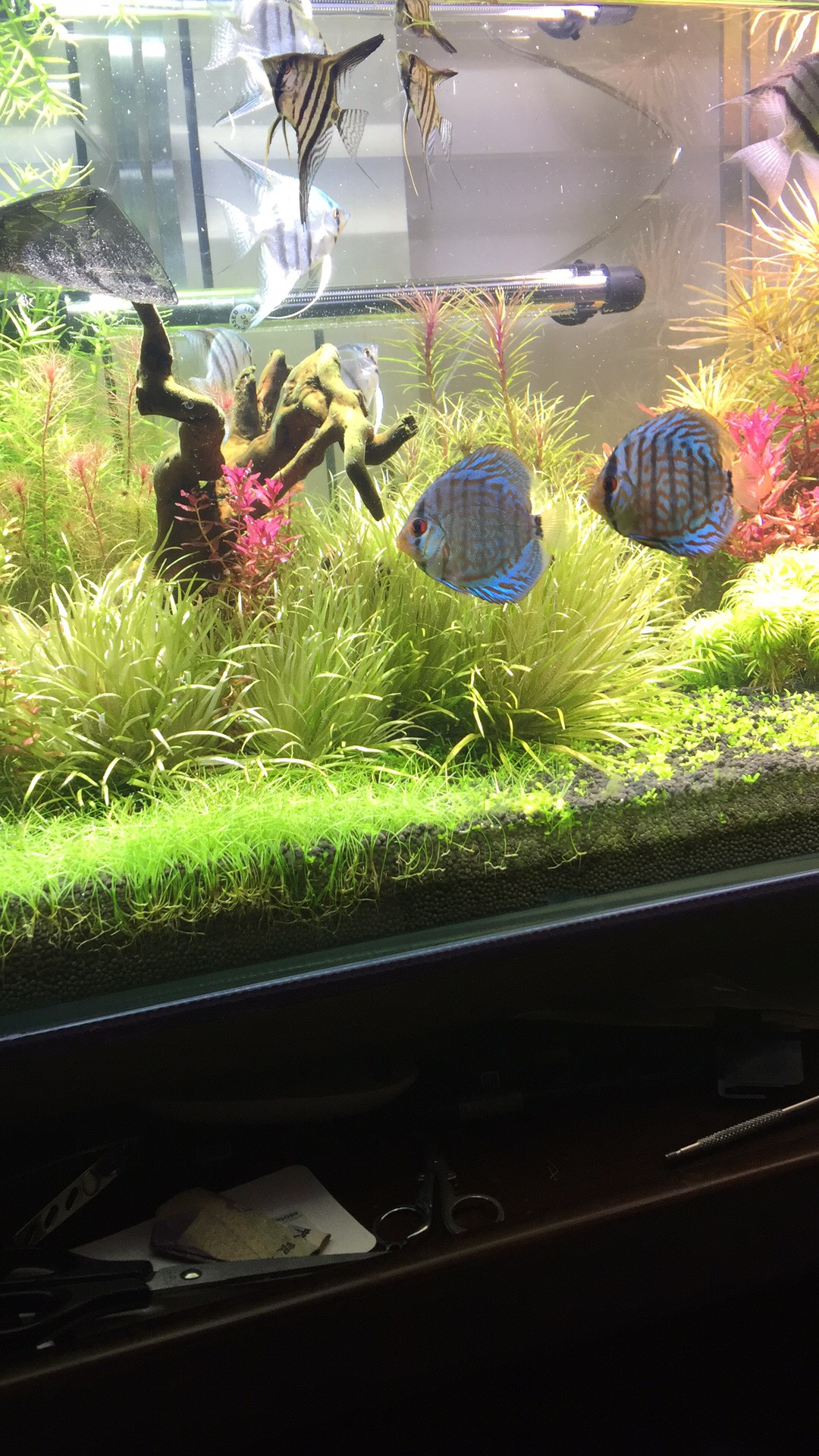 回复 SIDNEYABYSS :主要是七彩病了,需要升温,草缸植物高温承受不了,七彩也要定期检疫,药物对其他鱼和植物也不好,再说七彩食量也大,通常草缸过滤不够强大,鱼食和鱼屎也会容易残留,老是吸有点麻烦,本人新手,说错勿怪