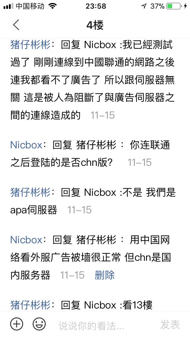 刚好过了23点广告就恢复了 这时刻也刚好是每天日常的周期起点 这也说明广告问题是服务器的问题 而不是所谓的中国网络问题 谁说的才是歪理 谁才是说话不动脑 不攻自破