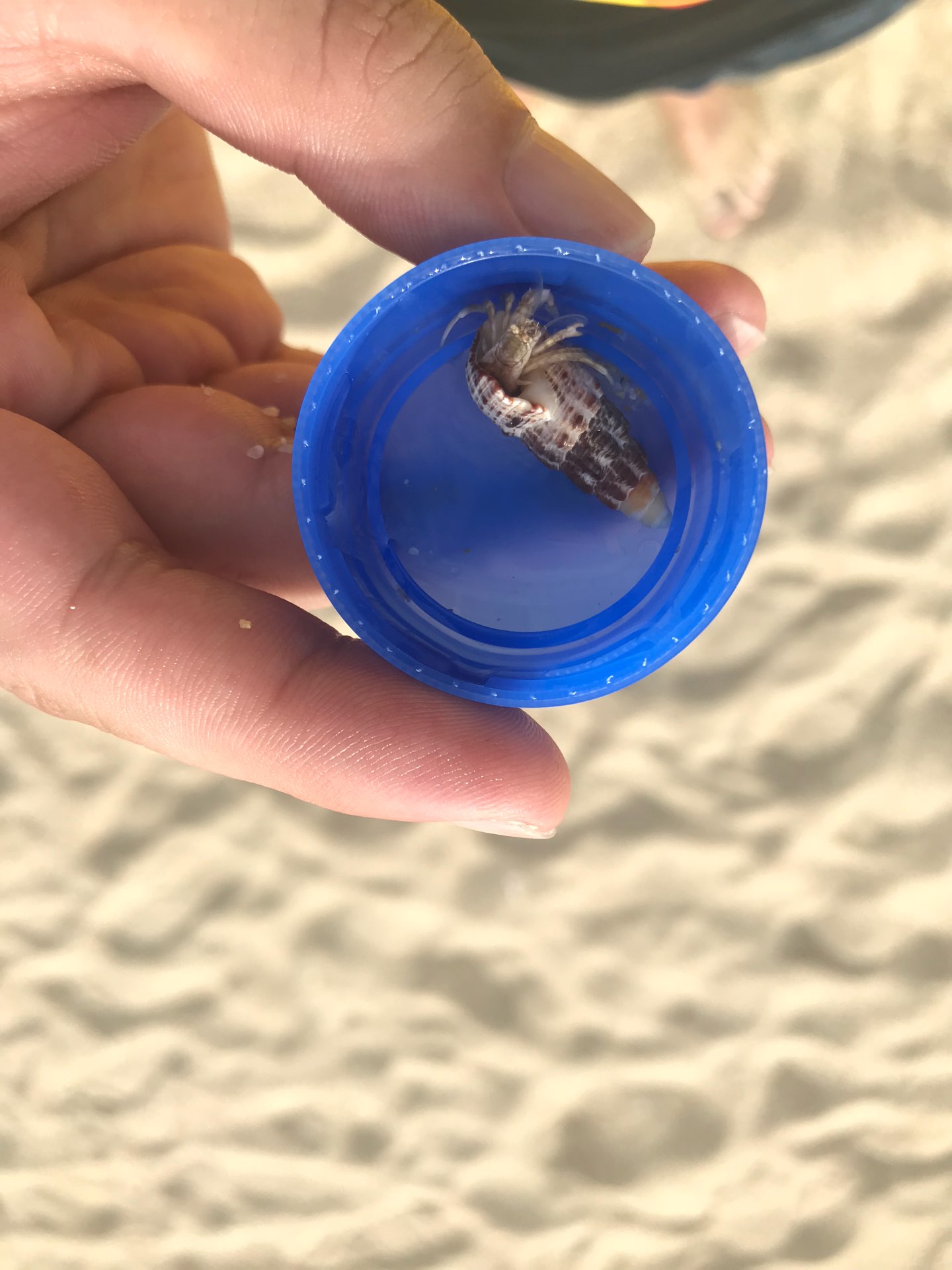 刚刚在三亚海滩玩,海水冲上来一个小寄居蟹