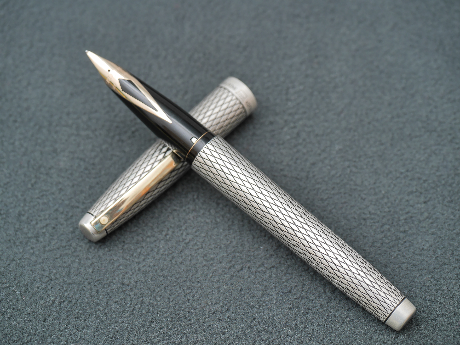 6、细节描述:品相相当不错的古董ring top(女士吊环)小平顶,拉杆上墨,上墨功能正常。笔尖非常有弹性。笔身为条纹镀金,或者包金?对于古董**,成色还不错,有轻微的小划痕,笔顶有一个很小的磕碰。笔尖没有标K数,应该为14K。适合收藏、把玩。