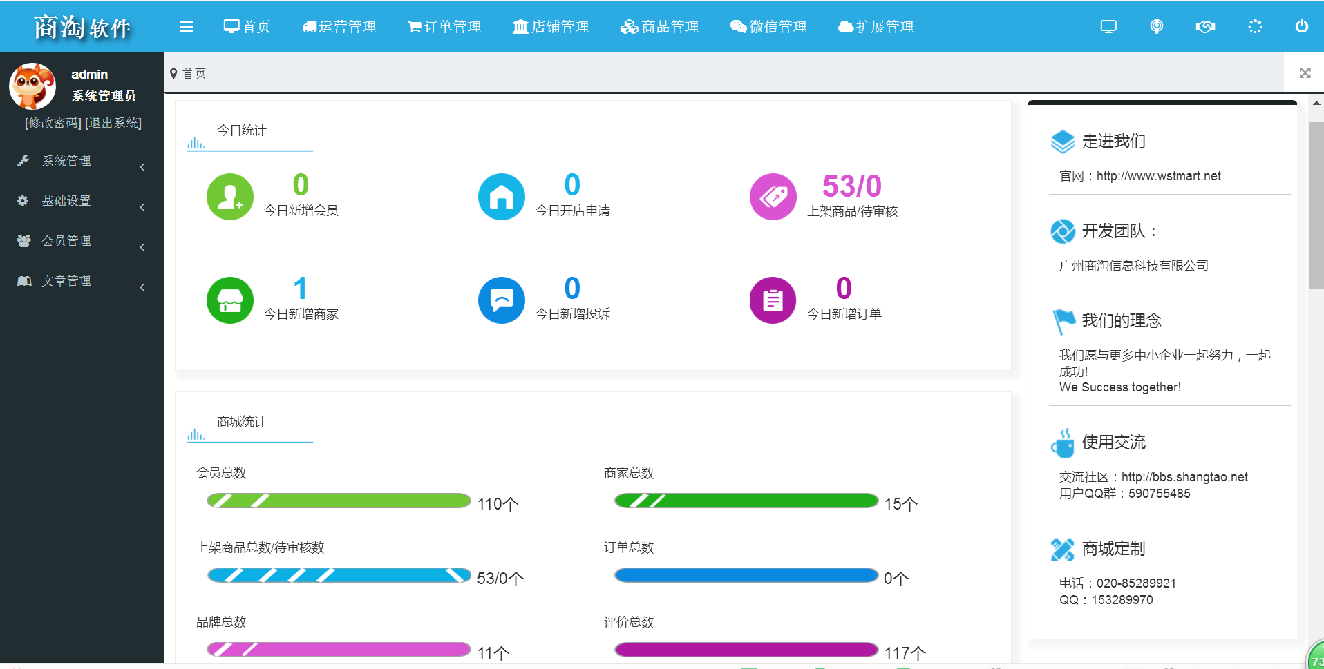 系统代码清晰易懂,大量的可视化报表便于运营者决策,丰富的营销功能让系统的应用场景广阔,良好的插件机制使系统更加易于扩展。系统操作简单,安全稳定,更新迭代快速,是广大用户直接使用和二次开发的最佳选择。